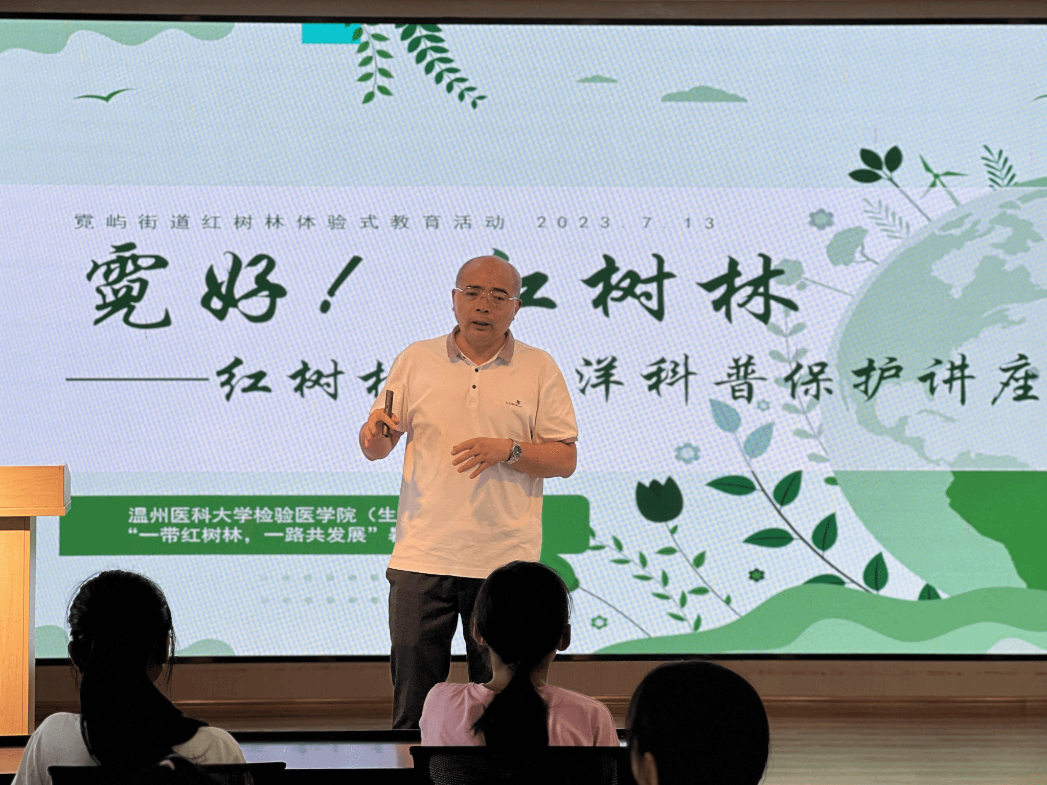 “一带红树林,一路共发展”暑期社会实践团前往洞头区霓屿街道党群服务中心,开展“守护红树林”体验式绿色教育活动。