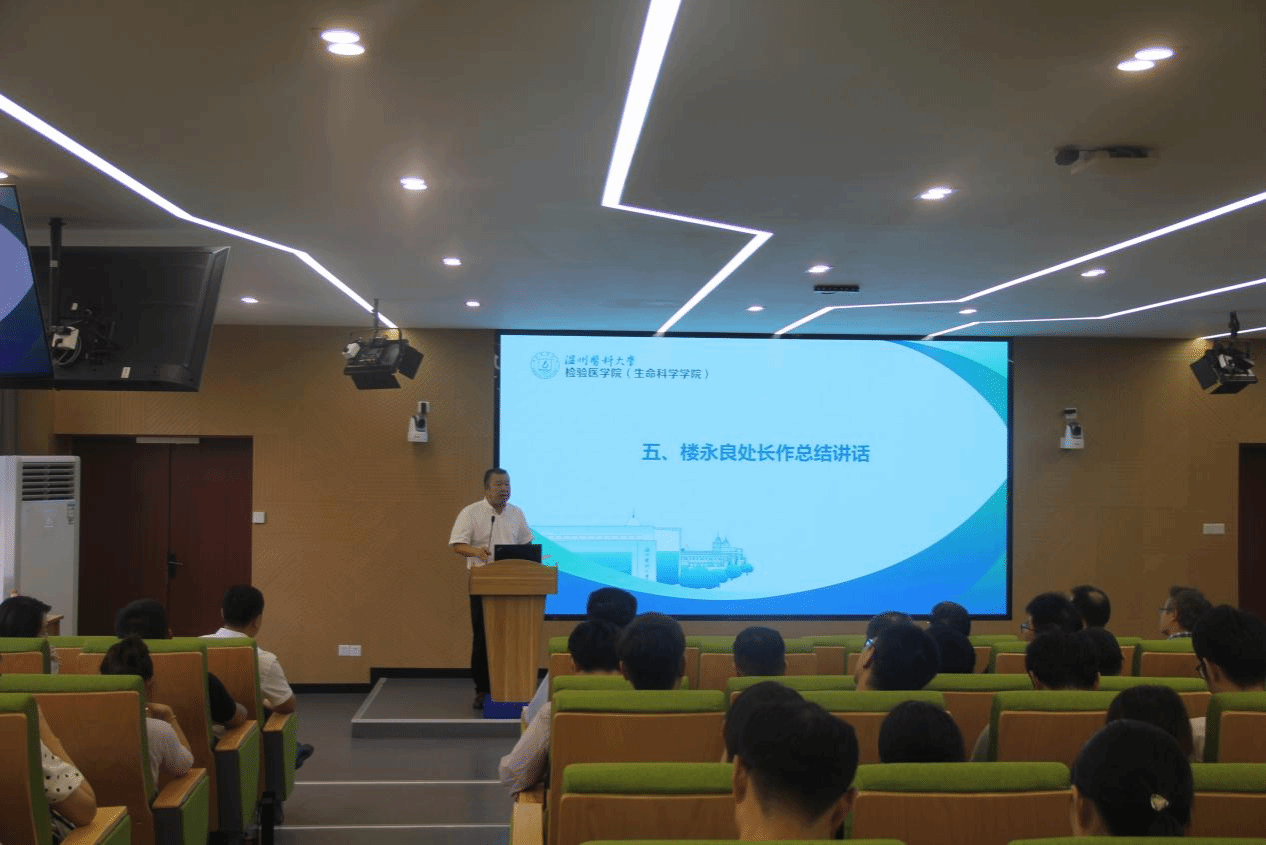 最后,楼永良处长向学院全体教职工的辛苦付出表示诚挚的感谢,并对新职工的到来表达热烈的欢迎。他充分肯定了学院上半年的成绩,同时指出今年是“十四五”规划实施承上启下的关键一年,学院要找准定位、认清形势,走出一条突破创新、积累质变的新路,对此,提出四点期望:一是总结主题教育成效,做好“后半篇文章”;二是健全人才培养体系,突出顶层设计优势;三是整合学科优势资源,促进学科交叉融合;四是推动科研提质增效,增强社会服务能力。