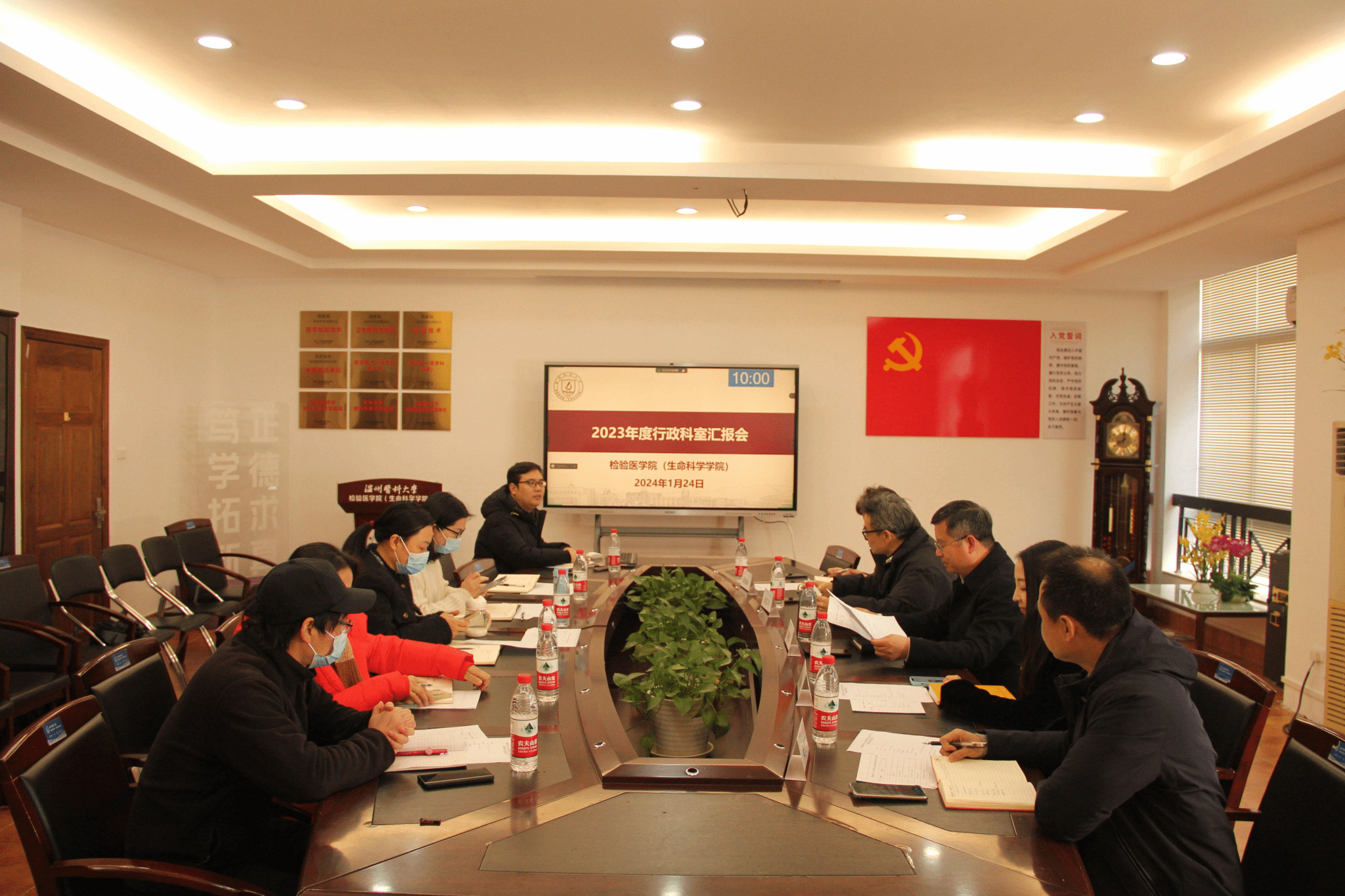 各行政科室(中心)负责人按照年度目标任务要求,结合具体工作实际,分别对2023年度工作及2024年工作计划进行了汇报。办公室总结了2023年度工作内容,有力发挥了学院枢纽和上传下达的重要作用,2024年工作聚焦学院发展目标,同时不断提升工作效率和服务水平;教学办公室聚焦高质量本科教学工作,有效推进了学院高质量本科教学建设工作,并对下一年度高质量本科教学工作计划进行了汇报;学生工作办公室做好学院思政“守坝人”,发挥党建引领学生成长,在基础工作扎实开展、就业工作提质增效、育人工作走深走实等方面取得成效;学院团委强调赋能青春,追梦向党,从打造思想引领“加油站”、搭建多元成长载体等举措,助力学院团员青年思想建设;学位与研究生工作办公室就研究生招生工作、培养过程、取得成果及2024年度工作重点进行了谋划;学科建设办公室就学科建设、科研平台、科研项目和成果、人才引育及举措等进行了汇报交流;实验教学中心就改善实验教学条件与环境,重视实验室安全管理,在推进实验教学改革与建设、提升学生实践技能等方面进行了交流;科研平台立足安全管理、仪器管理、场地管理,在形成管理体系的同时,也聚焦管理人员进修和培训;学院领导对各科室(中心)的汇报进行逐一点评,肯定了各科室(中心)的成绩,同时也对2024年的工作提出了期望。