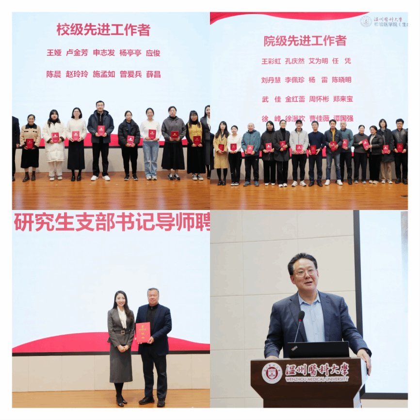 大会对获得校先进工作者、院先进工作者等荣誉的个人进行了表彰,并举行研究生支部书记导师聘任仪式。会上,学院2024年引进人才陆家海教授进行了发言。