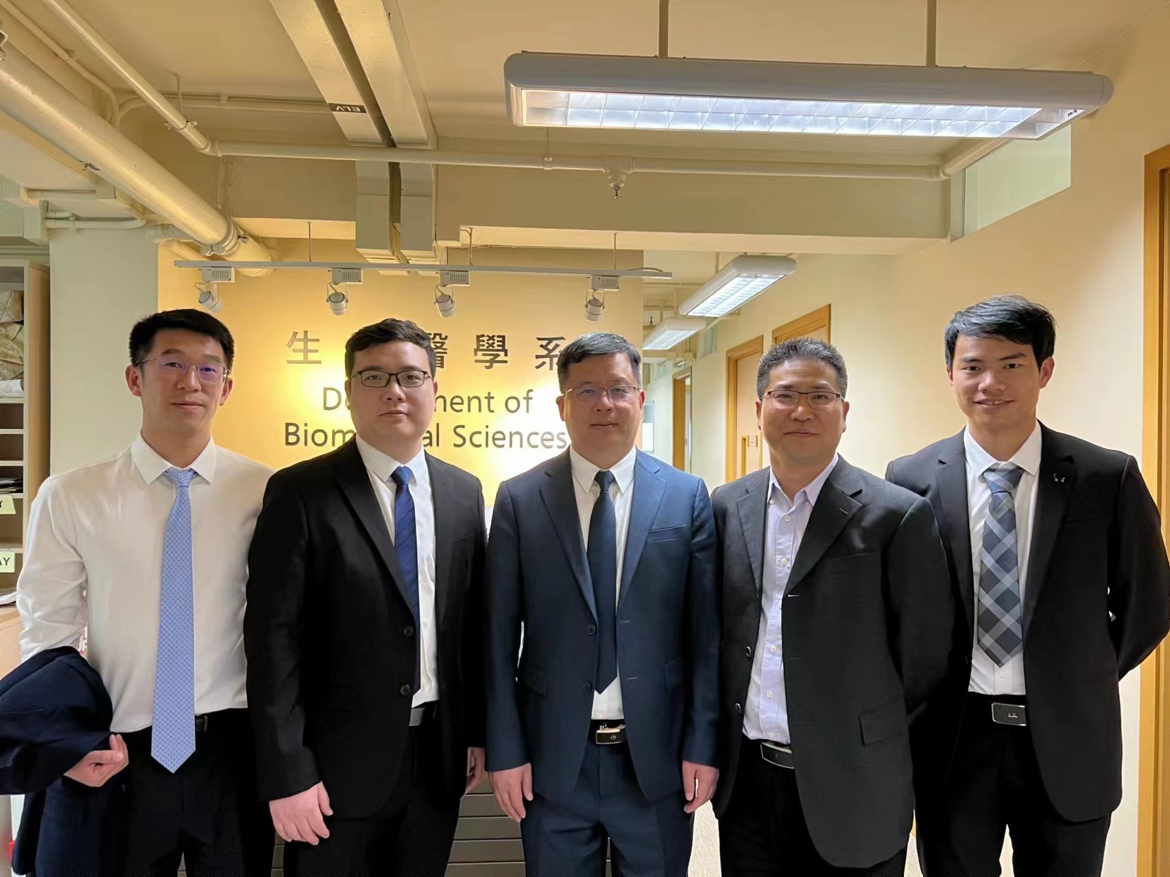 随后,院长郑晓群一行拜访了香港城市大学生物医学系并进行交流。香港城市大学生物医学系主任黄聿、科学主任吴子健、副教授麦经纶等出席交流会。系主任黄聿分别从生物医学系发展历程、本科生及研究生培养特色、学生科研创新等方面进行了交流分享。会上双方还围绕国际项目合作、国际交换生项目推进、科研和成果转化等方面进行了深入交流和讨论,并进一步表达了深化合作的愿景和方向。