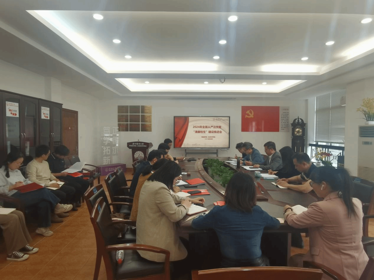 召开2024年全面从严治党暨“清廉检生”建设推进会,学院党政领导班子、党支部书记参加会议,院党委副书记、纪委书记余信丰主持会议。