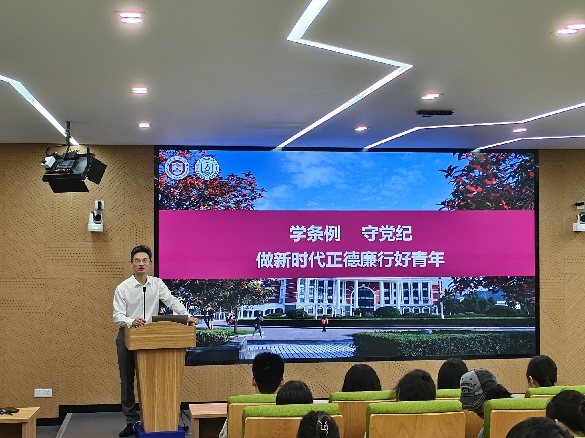 开展“学条例,守党纪,做新时代正德廉行好青年”——2024届毕业生党员最后一堂党课暨廉洁从业教育。课程由学院党委副书记、纪委书记余信丰主讲,全体毕业生党员参加。
