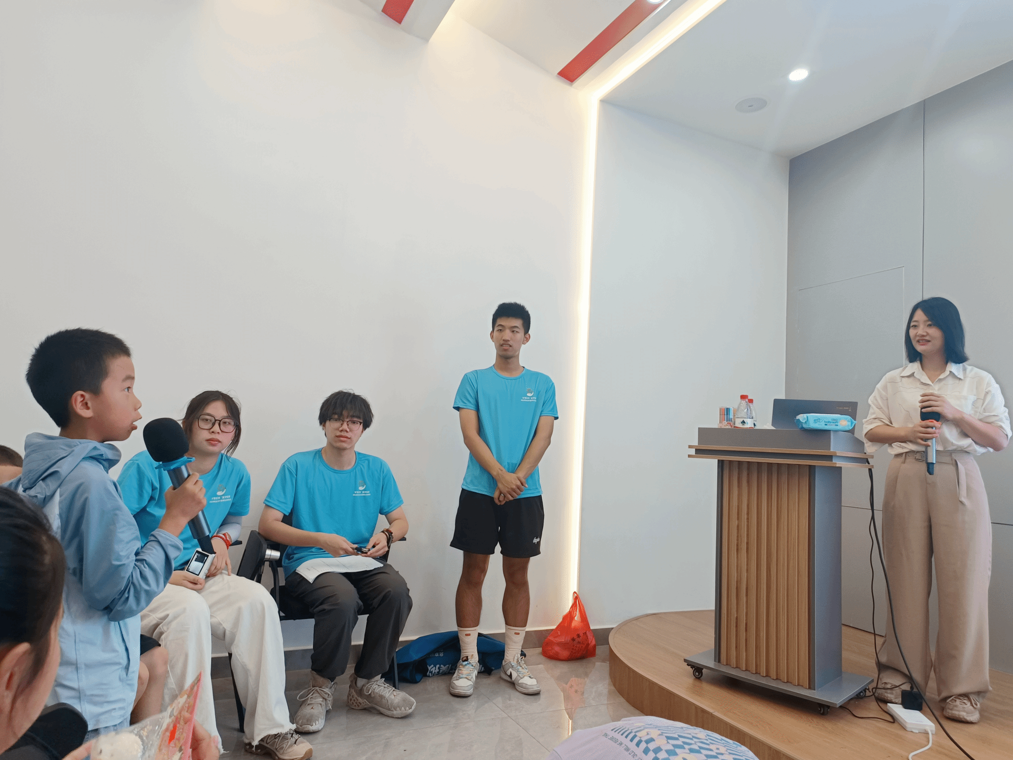 上午九点,阳光正好,开营仪式在主持人的热情开场中正式启动。温州市生态环境局洞头分局生态科科长应凌锋,北岙街道微动力党支部书记、洞头区慈善总会义工分会会长陈素芳,温州市洞头区半屏山学生实践学校校长叶明收,洞头团区委学少线、权益线负责人许洋洛出席此次开营仪式。应凌锋科长对实践团的到来表示热烈欢迎,并对本次夏令营提出期望,希望每位营员都能认真学习海洋生态系统的相关知识,增强保护生态环境的能力,早日成为未来的小小生态保护者,也希望加强与实践团的合作、共同举办生态保护公益活动。