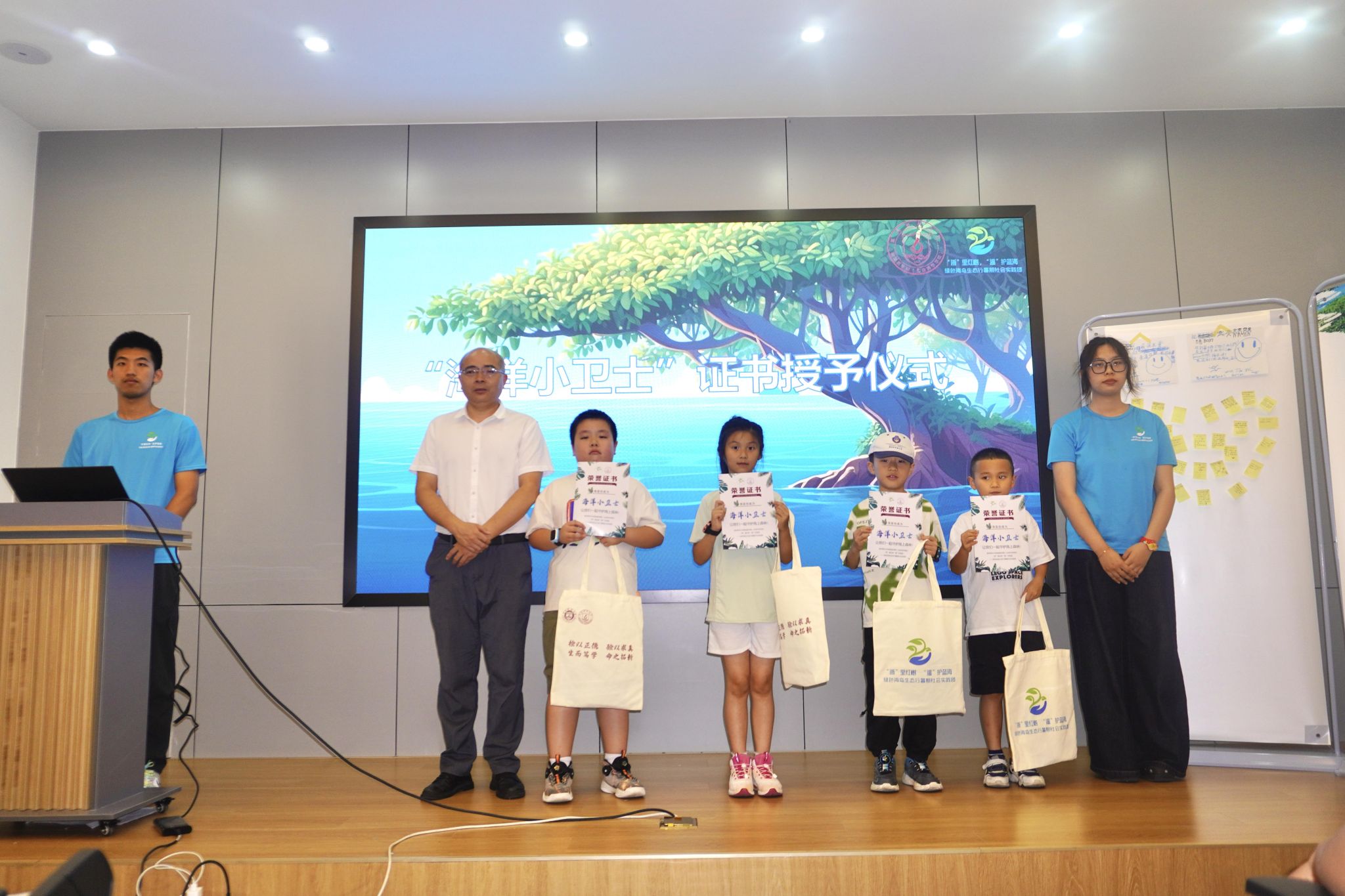 在结营仪式上,实践团聘任小营员们为“海洋小卫士”,并充分肯定小营员在本次夏令营的优秀表现,希望小营员们认识海洋、热爱海洋、共同为保护海洋环境出一份力。