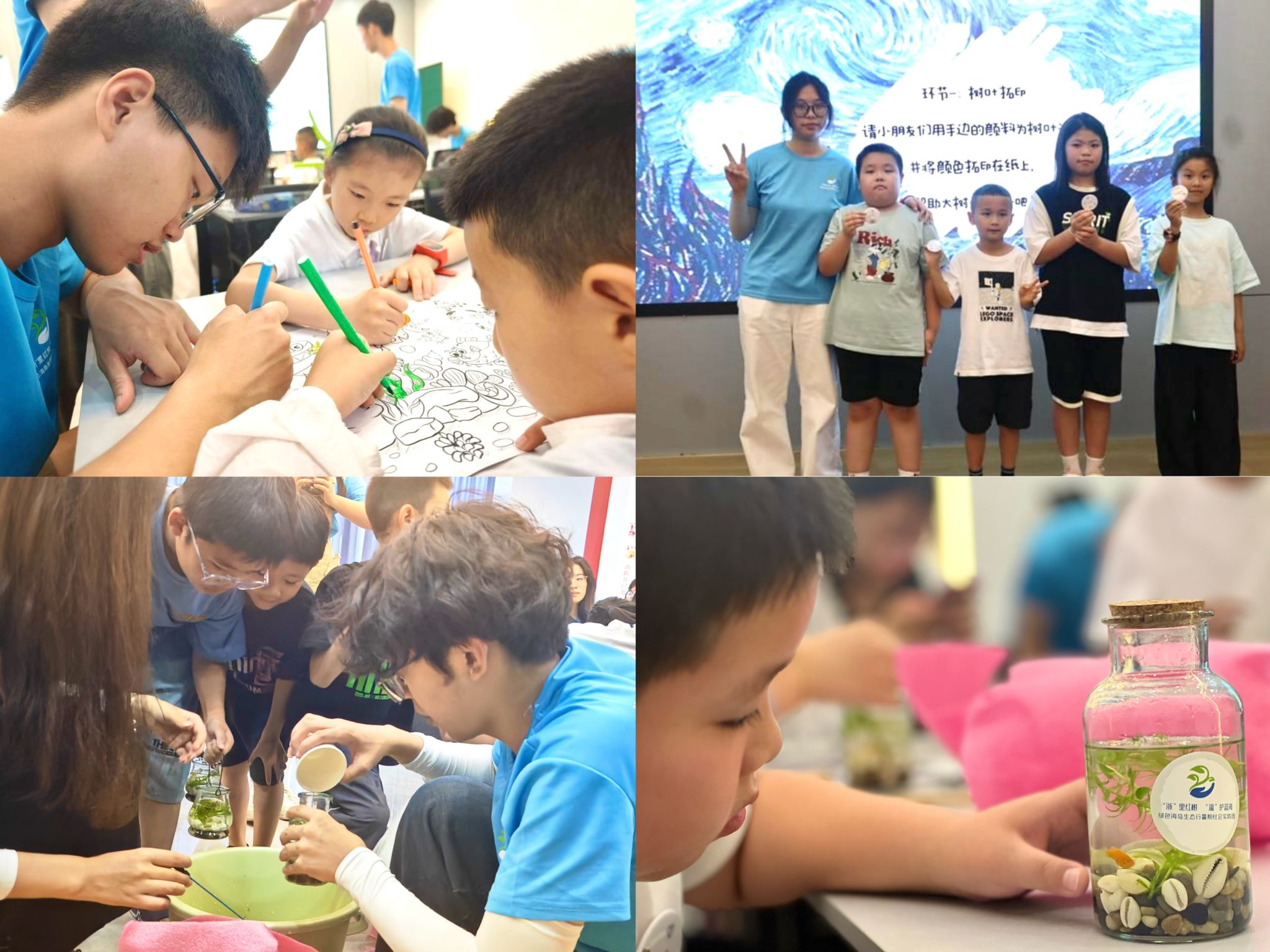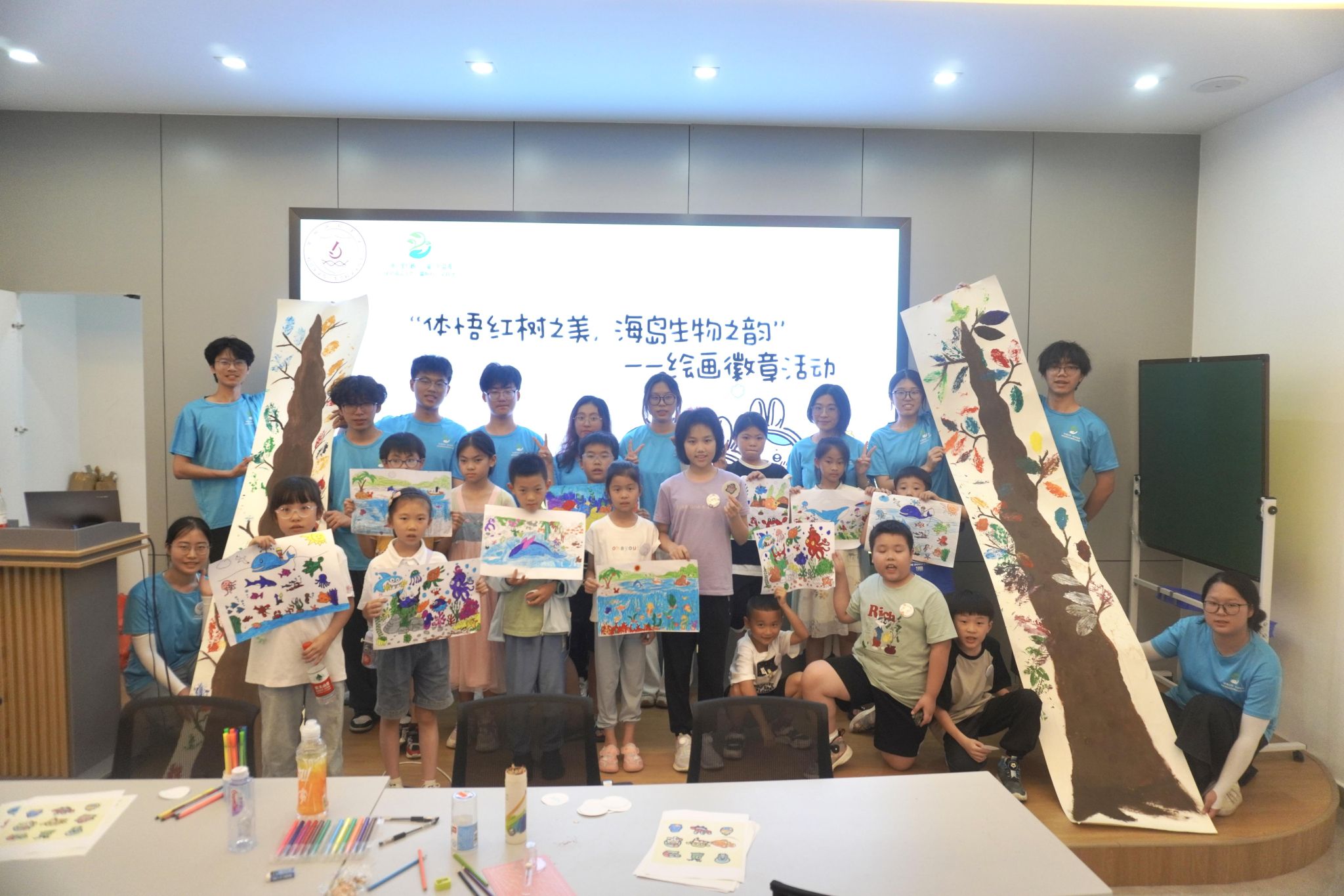 在《红树林的奥秘与价值》科普课堂上,小老师们生动形象地讲解了红树林的基本知识,解答了小营员们提出的“为什么红树林是绿色的”“红树林有什么作用”等问题,在小营员们的心中种下了“守护红树林”的种子。在海洋生物标本展的互动环节,小老师们详细介绍了多种海洋生物标本,引导小营员近距离感受海洋生物的魅力;在海洋绘本“悦”读会中,小老师们带领着小营员一起探索丰富奇趣的海洋知识,充分激发了小营员们对海洋的求知欲,增强保护海洋的意识。DIY贝壳冰箱贴、海洋生态瓶、海洋生物徽章、儿童海洋画、海洋扭扭棒……课堂上小老师们带着营员制作了一系列海洋文艺作品,共同领略海洋之美。