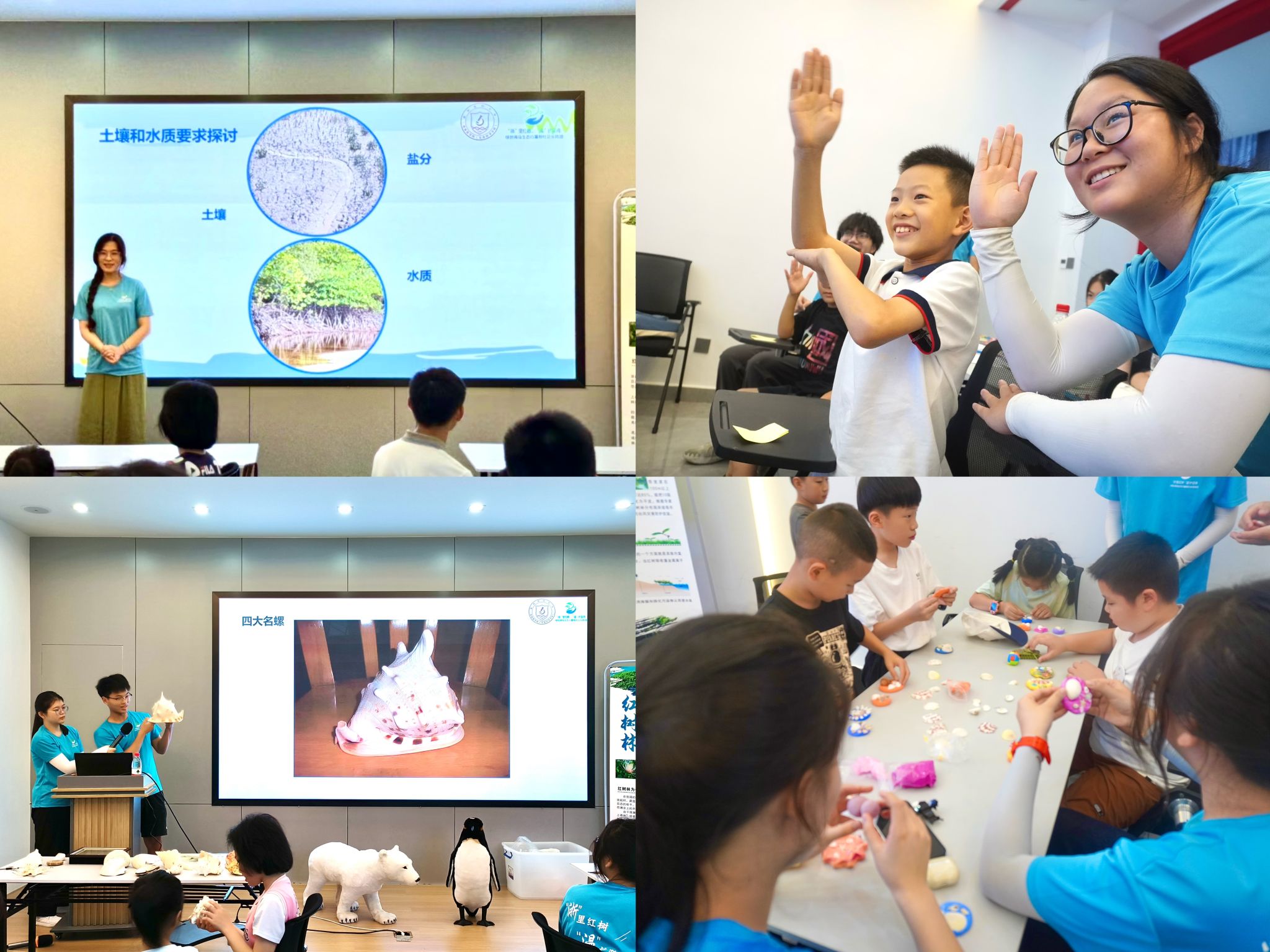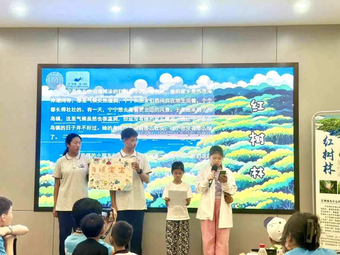 在翻转课堂上,小营员们纷纷化身为“小小老师”,在他们绘声绘色的讲述下,一幕幕充满创意的海洋奇遇故事接连上演,生动展示了夏令营期间的学习成果和收获。孩子们用童言童语分享着自己对红树林和海洋生态保护的创意与理解,“我们可不能随便往海里乱扔垃圾哦,不然海绵宝宝和他的好朋友会找不到家,还会被垃圾怪给困住!”