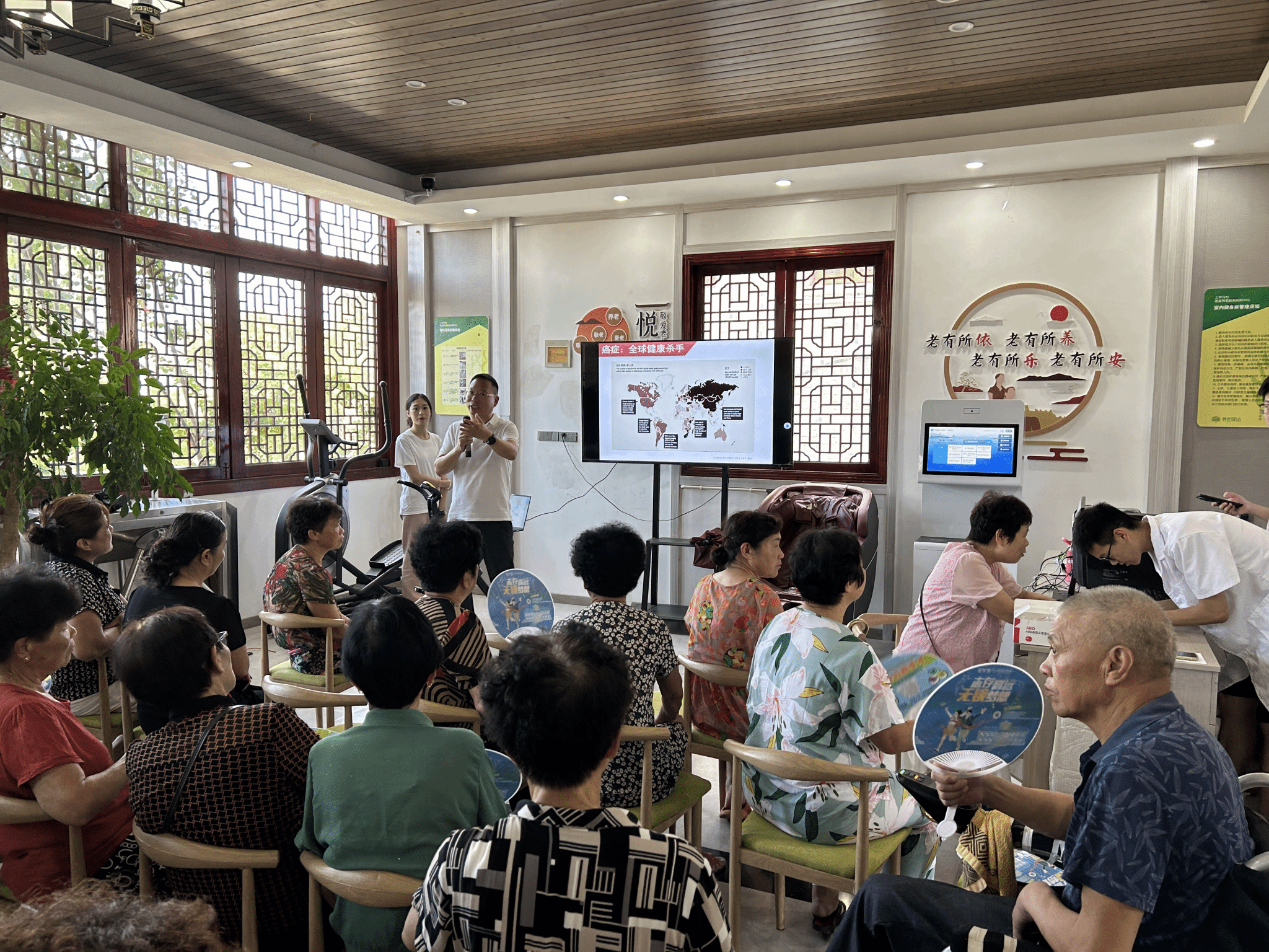 卫生检验与检疫学系党支部书记、结直肠癌研究专家李祥老师向当地村民开展以结直肠癌防治为主题的科普讲座,并向村民分发了用于结直肠癌筛查的装置,免费为村民提供检测化验服务。