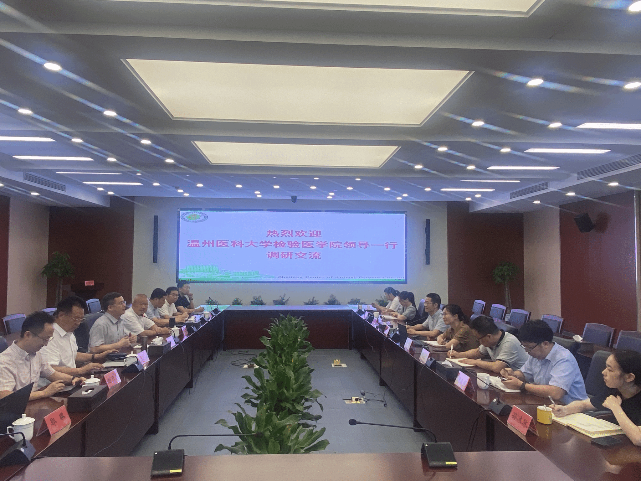 调研组一行首先前往浙江省动物疫病预防控制中心,浙江省动物疫病预防控制中心主任赵灵燕、副主任陈勇、陈洁等参加座谈,赵灵燕介绍了中心基本情况、会上双方就重大动物疾病、人畜共患病等合作方向进行了交流探讨;随后调研组前往浙江省疾控中心,浙江省疾控中心副主任张严峻、微生物所所长吴蓓蓓、理化毒理所副所长胡争艳参加座谈,双方围绕探索共同育人模式,推进共建项目、人才培养等方面进行了深入探讨,并就人畜共患病的防治路径、疫苗抗体检测、学生实习等内容进行讨论。
