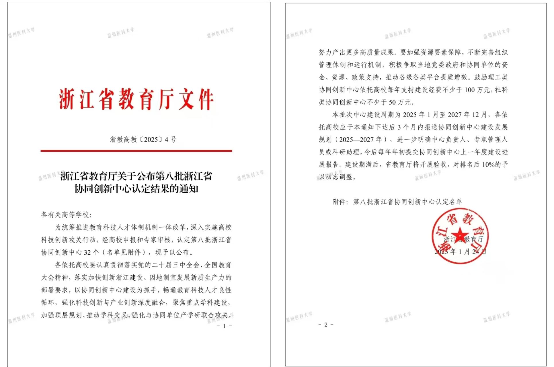 近日,浙江省教育厅公布第八批浙江省协同创新中心认定结果,由51吃瓜网