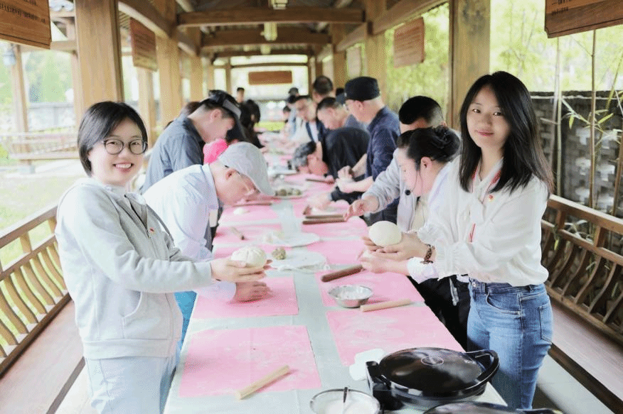 在永嘉传统工艺体验馆,老师们系统学习了"三粉一馅"麦饼制作传统工艺,完成揉面、塑形、包馅、烘烤等工序。当金黄酥脆的麦饼膨胀隆起,飘香四溢,老师们感叹于传统民俗工艺的巧妙。"平时只是品尝过麦饼,亲身参与制作更传承了这份传统民俗文化。"参与制作的老师说道。这道承载着永嘉山水智慧的非遗美食,既展现了独特的地域文化符号,也让传统技艺在互动体验中得到活态传承。