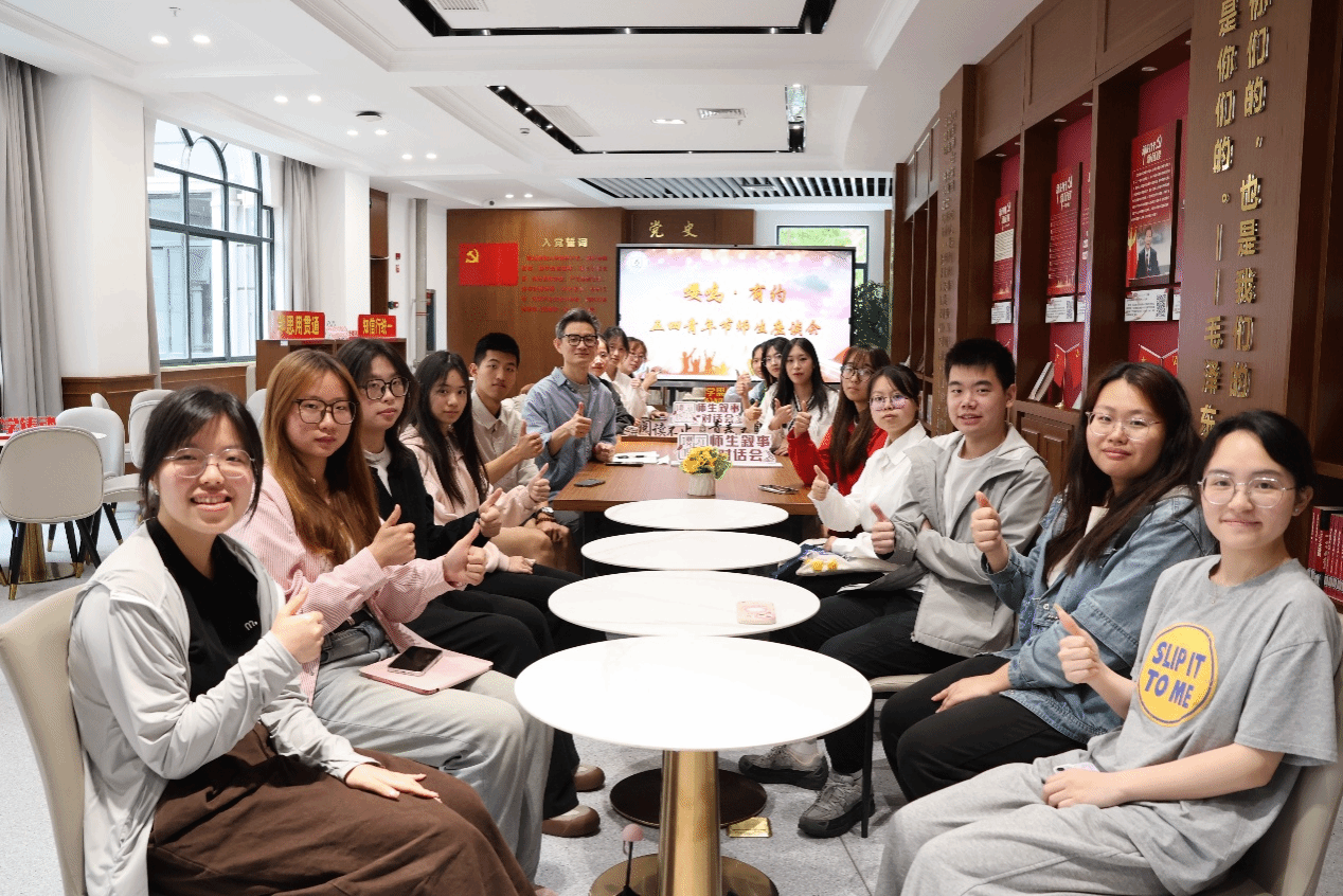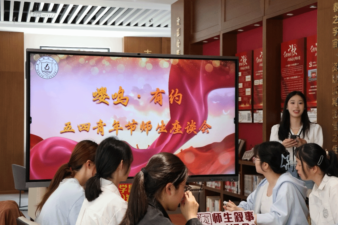 在图书馆青春书房举办“嘤鸣有约”五四青年节师生座谈会。院党委副书记余信丰与院学生组织干部代表参加此次座谈。