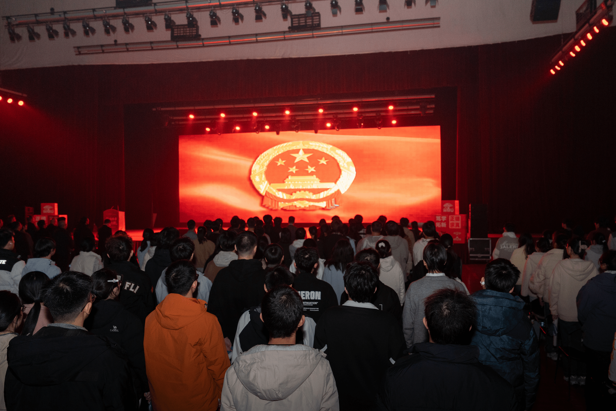 大会在庄严的国歌声中拉开帷幕。全体师生肃立高唱,铿锵的旋律激荡着每个人的爱国情怀与奋进力量。
