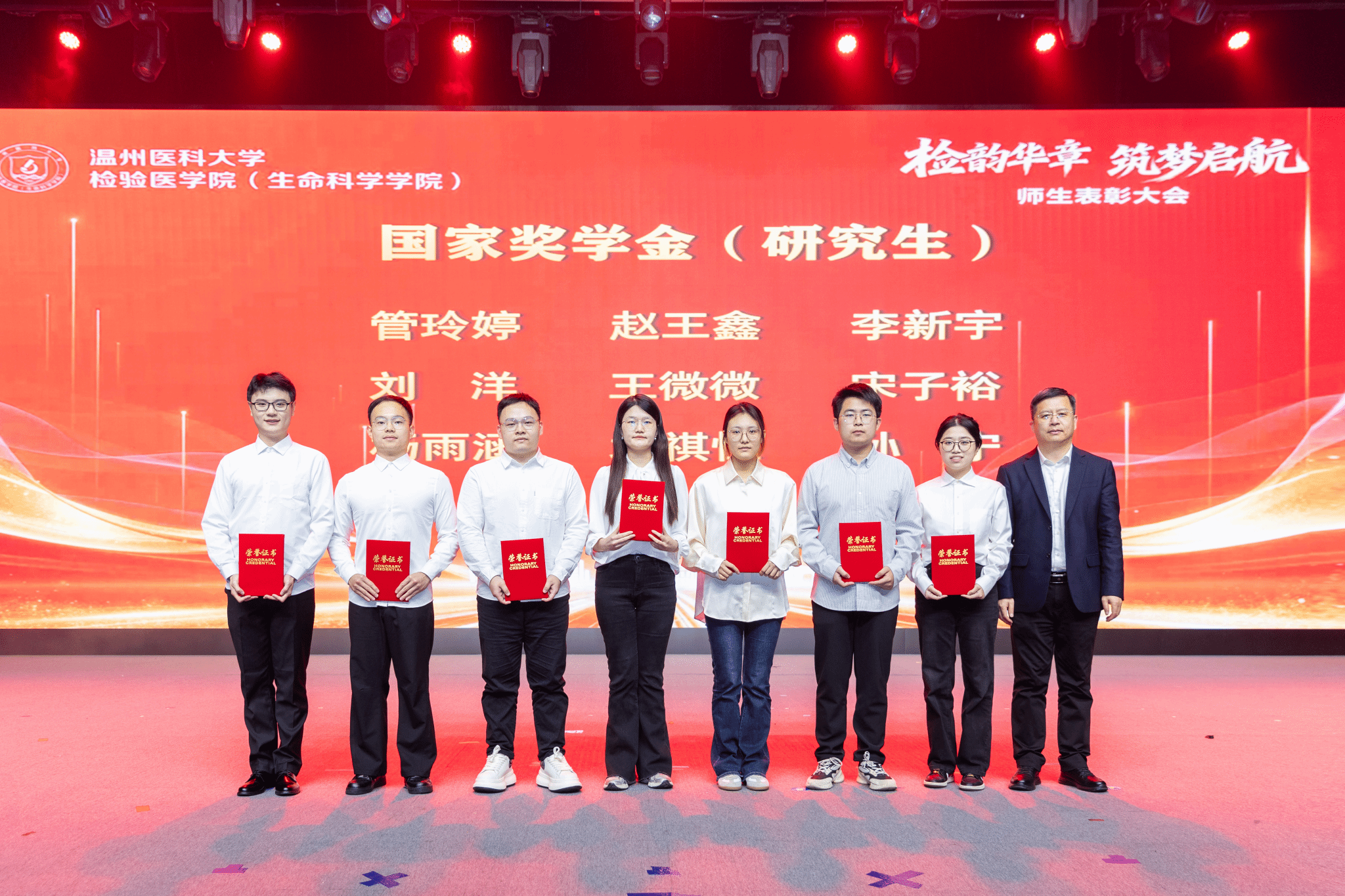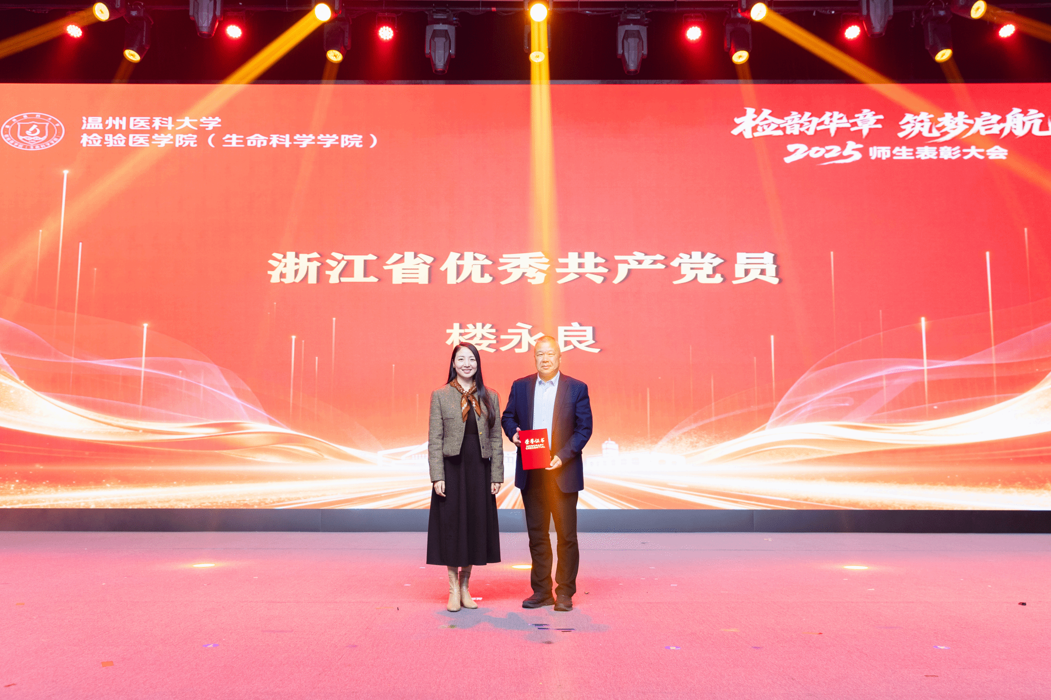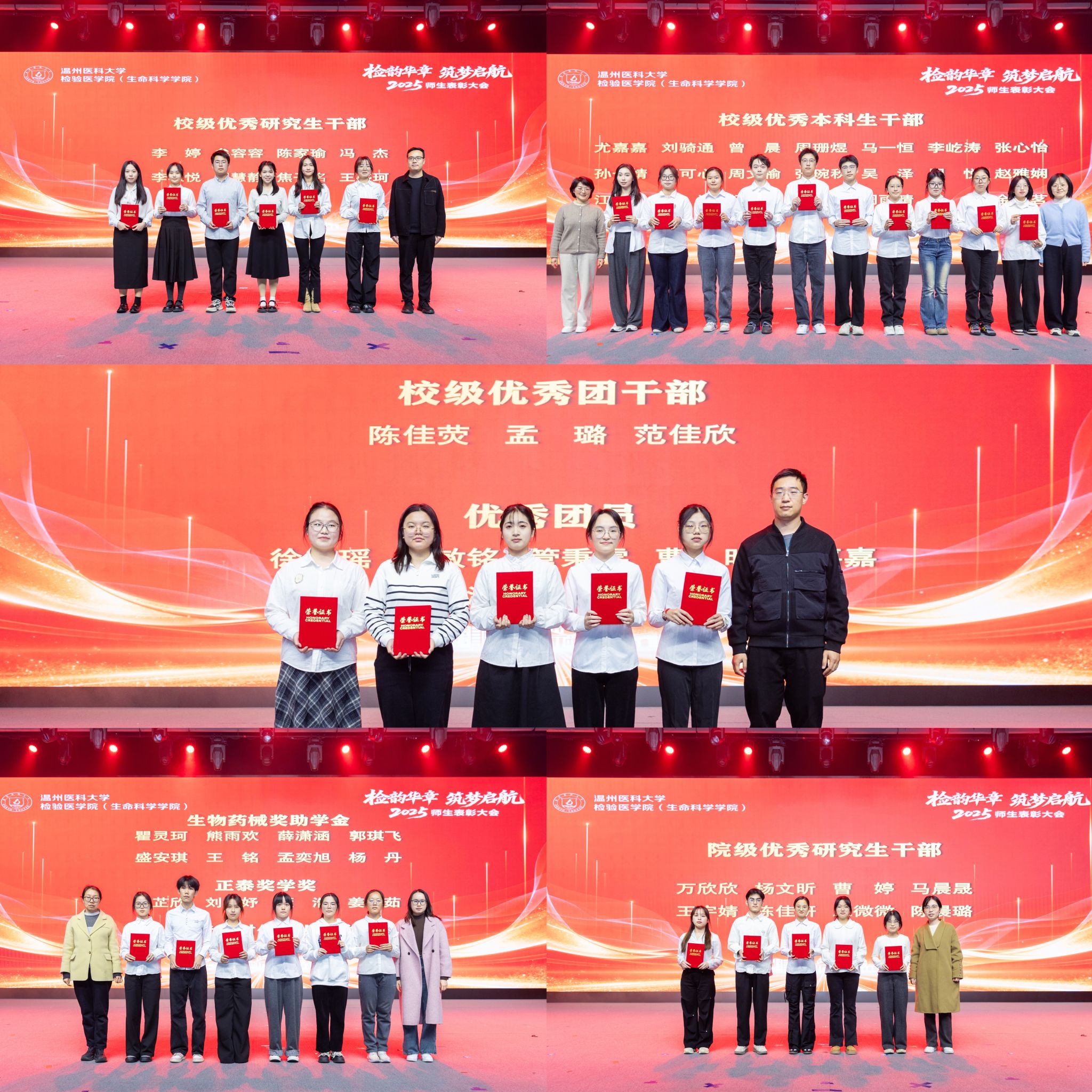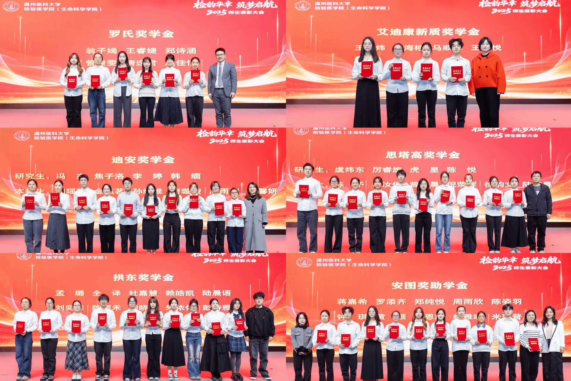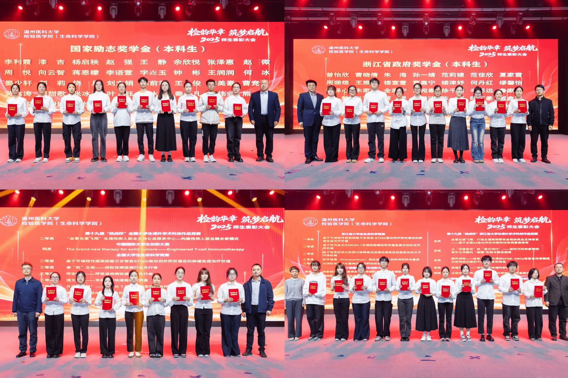 学子的卓越风采与榜样力量。本年度,学院共有215人次获得各级各类奖助学金。颁奖仪式依次颁发国家奖学金、国家励志奖学金、浙江省政府奖学金,以及国家级、省级双创竞赛奖、校级个人与集体荣誉,并颁发了罗氏、艾迪康、迪安、思塔高、拱东、安图等多项社会奖助学金。一批批优秀学子依次上台领奖,他们勤学笃行的身影,为全体学生树立了鲜明榜样,也体现了社会各界对学院人才培养的高度认可。