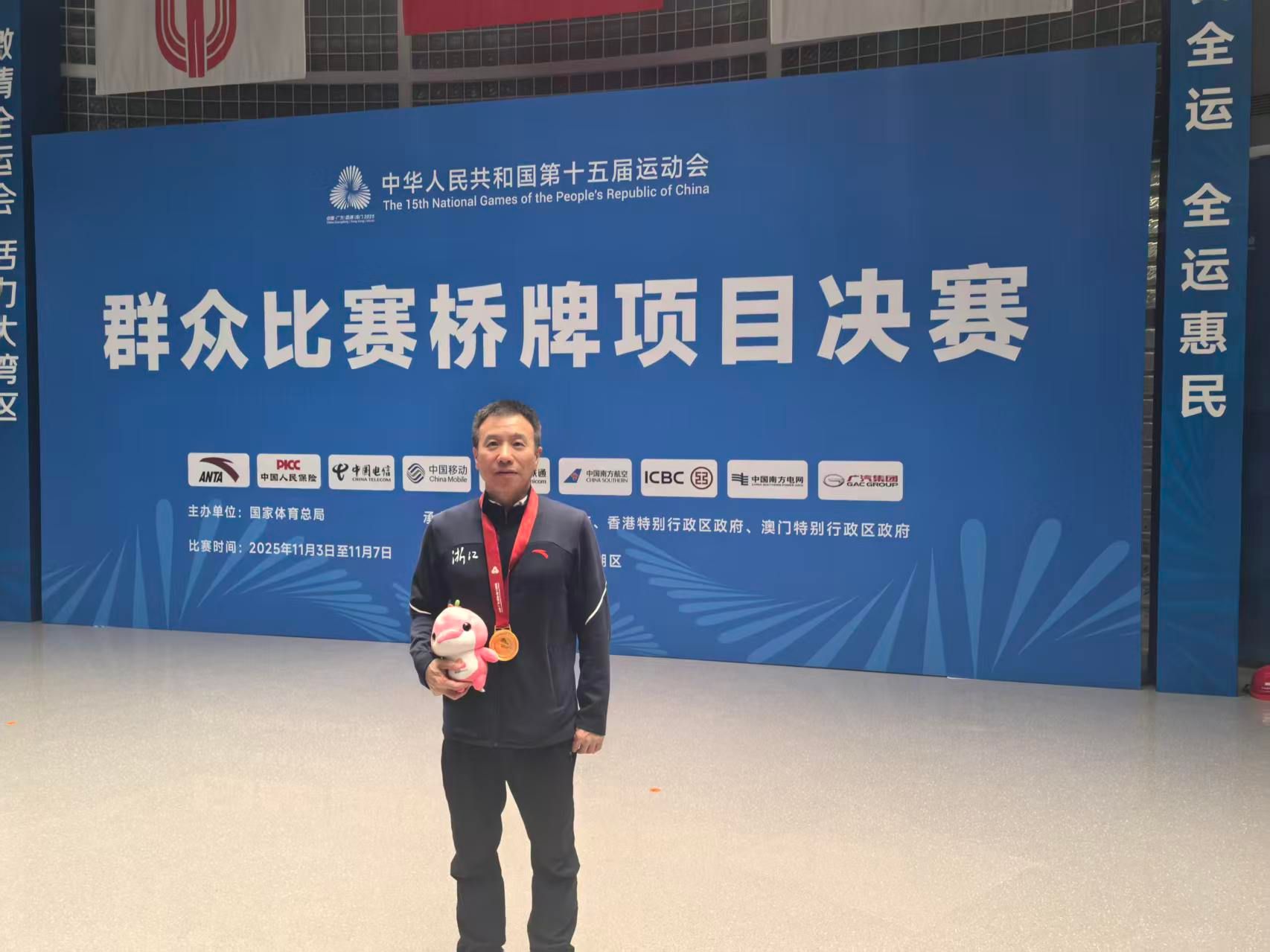 2023年,他作为教练兼运动员获得全国智力运动会桥牌冠军;2025年,又获得全运会团体金牌。这两个冠军对他来说意义完全不同。这是他三十多年桥牌生涯中的两座里程碑,但蕴藏的价值和责任完全不同。“智运会冠军是圆梦式的突破,全运会冠军是登顶式的担当,两者层层递进,各有各的重量。”他带领青少年队创下全国U15组亚军的历史最佳成绩。这种看着队员成长、取得好成绩的喜悦,和自己夺冠的感受有什么不同?他说,这两种喜悦就像桥牌中两种截然不同的牌局体验。“个人夺冠是躬身入局、突破极限的酣畅,带领青少年获得佳绩是俯身引路、见证绽放。”这两种快乐存在着传承的温度,“带领他人比个人登顶更显得厚重,也更值得回味。”