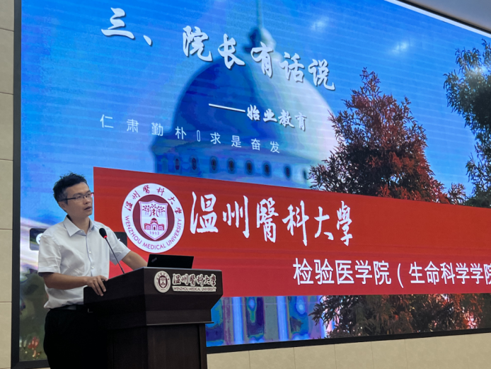 陈贤新副书记首先对2022级研究生加入我们学院表示欢迎,接着对学生提出了三点希望:一是希望各位同学要完整的认识自己,认识自己有什么缺什么;二是来温医要做什么、获得什么,尤其要清楚在大学要学会什么,他特别指出要学会独立思考,独立完成自己的目标,要学会经历挫折;第三要大家思考离开温医要干什么,尤其要树立一个远大的目标。