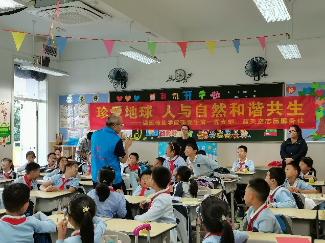 (生命科学学院)研究生第一党支部在艾为明教授的指导下,联合蓝天空志愿服务社举办了以“珍爱地球,人与自然和谐共生”为主题的科普公益宣传活动。