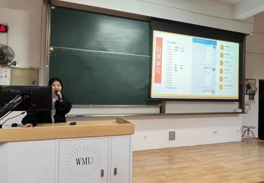 马佳敏同学从学习生活、社会活动、科创生活等多方面入手,以其所在班级为例,向参会团支书们介绍团支部创建经验,生动展现了一个优秀团班集体的积极向上风貌。