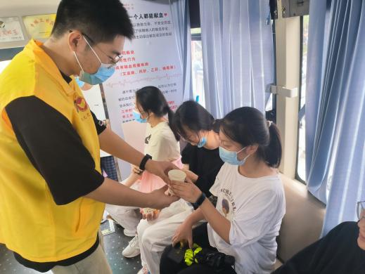 献血过程中,志愿者们一边维持着现场秩序,一边密切关注着同学们的身体状况,确保献血活动的正常进行。