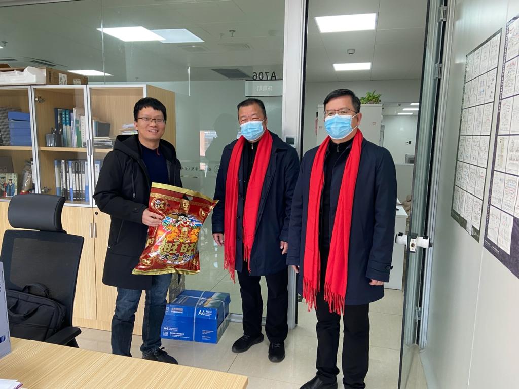 新春慰问送温暖,师生座谈话佳节。1月16日下午,校人事处处长楼永良、执行院长郑晓群、院党委副书记陈贤新一行来到科研实验平台慰问留校师生,提前为大家送上新春佳节的祝福和新年礼包。