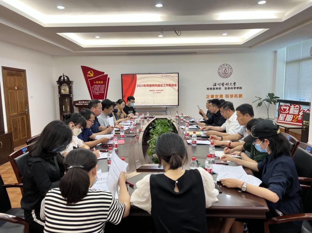 召开2023年师德师风建设工作推进会。学院领导班子、各系、科室、中心负责人及党支部书记参加会议,学院党委副书记、纪委书记陈贤新主持会议。
