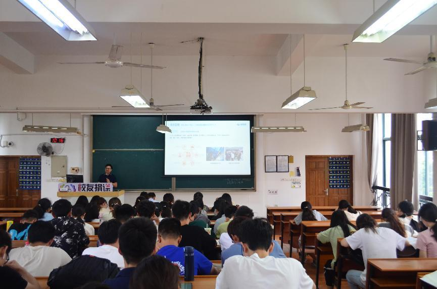 潘荣杰以“行远自迩,笃行不怠”为主题,结合自己的成长经历和独特见解分享了个人在企业的工作经历、企业内部业务、迪安诊断发展情况等内容,强调同学们要加强未来职业规划,敢于试错,通过结果导向思维让学生的学习实践更具目的性,让努力不负付出。