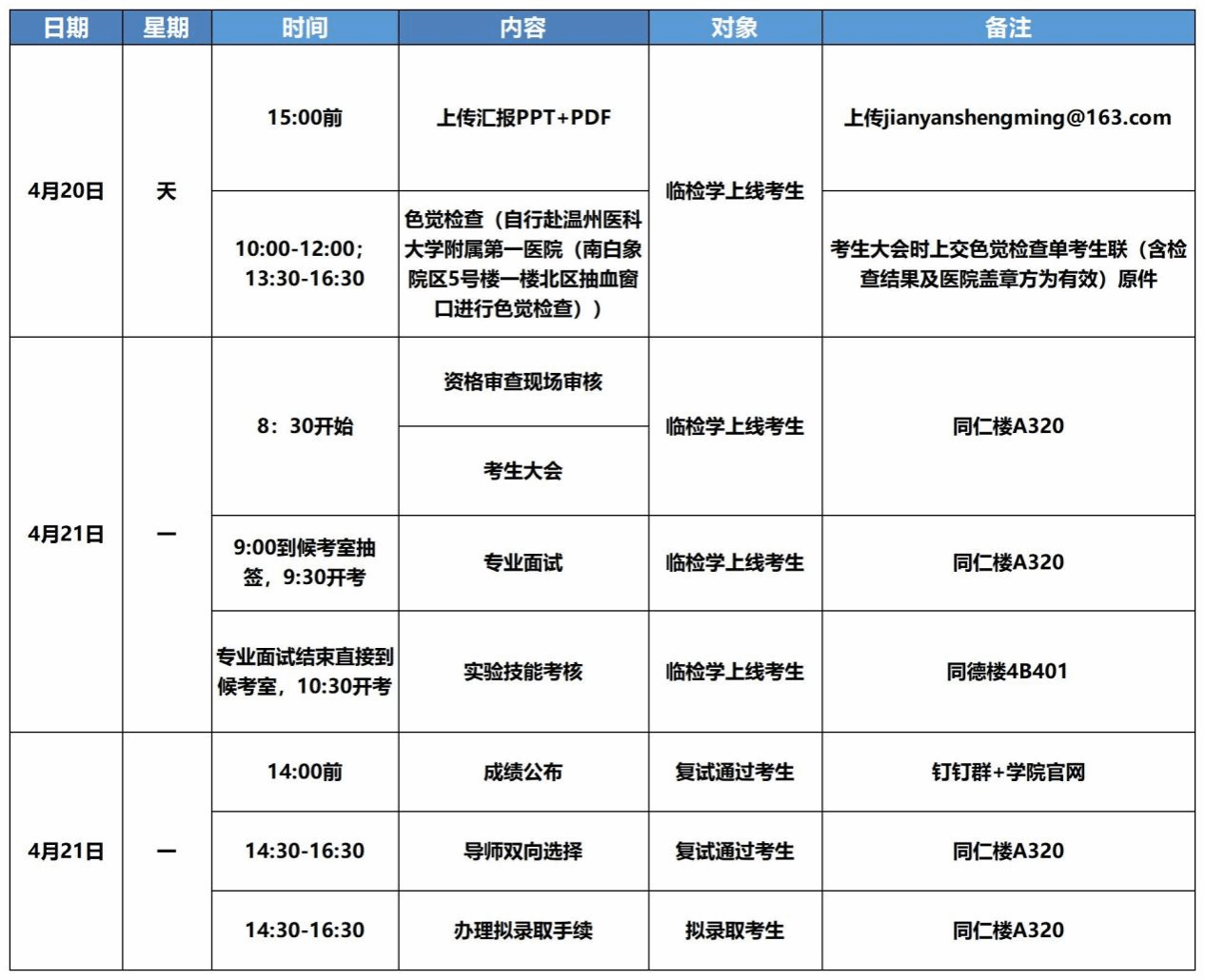 2025年硕士研究生复试录取工作方案》文件精神,现将硕士研究生(临床检验诊断学学术型)调剂复试安排情况通如下: