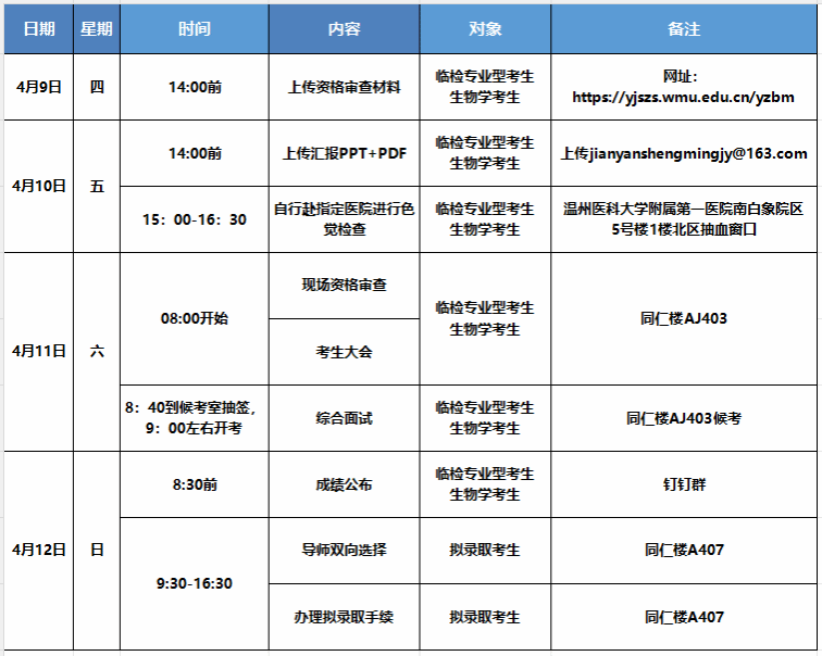 八、复试日程安排简表