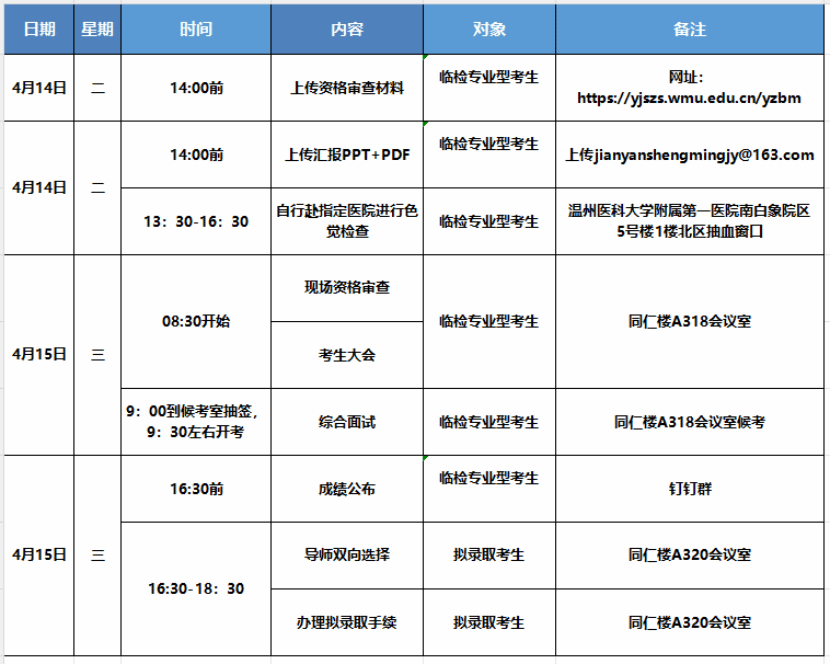 八、复试日程安排简表
