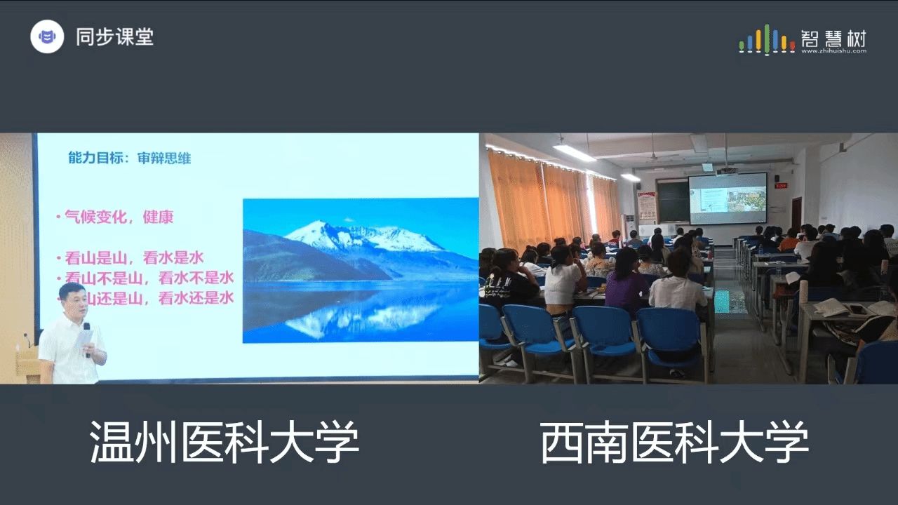 茶山校区智能教室6A107 开课,与此同时,远在1800多公里外的西南医科大学和成都医学院的学生利用智慧树平台与温医大学子共享了这一精彩课堂。