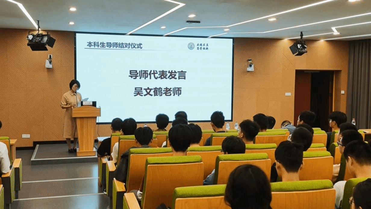 吴文鹤老师作为导师代表发言,她强调了检验医师专业开设的不易以及肩负的重大使命,并围绕社会发展需求、就业指导、科研选题等方面介绍了双导师制的优点——不同导师的经验、资源不同,同学们可以有效整合资源与建议,更好提升自己能力,助力自身发展。