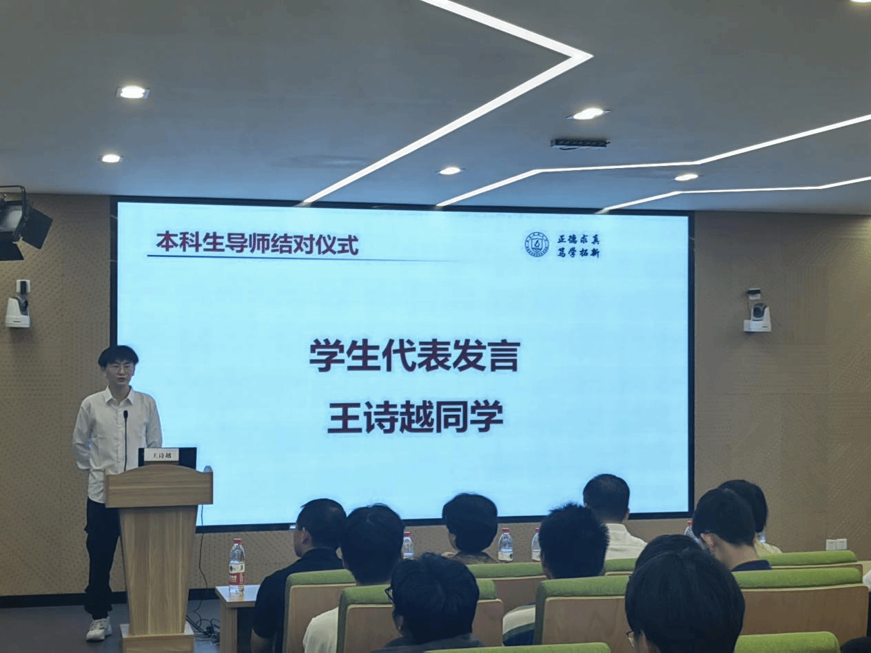 学生代表王诗越同学结合检验医师的职责特点,感谢导师们在理论学习、科研实践、专业引导、职业规划等方面给予的无私指导与支持,同时他也表示同学们将在导师们的引领下,在科研中发掘更多的潜力,提高自身创新能力、实践能力和思维能力,更好地成长为具有创新思维和实践能力的医学专业人才。