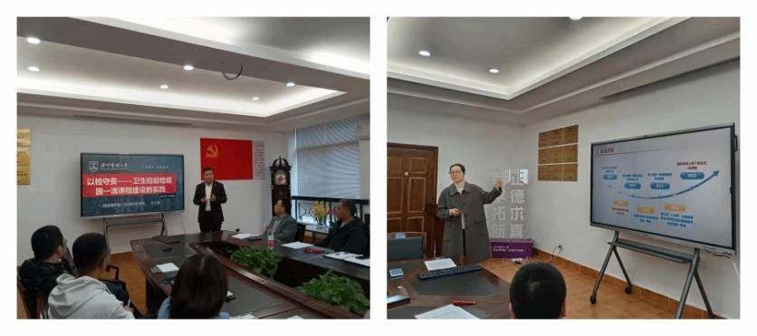 会上,教学办主任陈晨进行了学院教学工作的汇报。关万春、王彩虹老师分别就国家级一流课程《卫生检验检疫》《临床免疫学检验技术》作课程建设经验的分享报告。随后,15门核心课程的负责人围绕课程建设目标、已开展和取得的建设成果、存在问题分析、下一步工作举措等重点内容依次进行汇报。会上各课程教师还在优化教学内容、深化教学改革、强化教学改革、加强教学资源建设、优化实践教学环节、完善评价机制等方面展开了热烈的讨论。