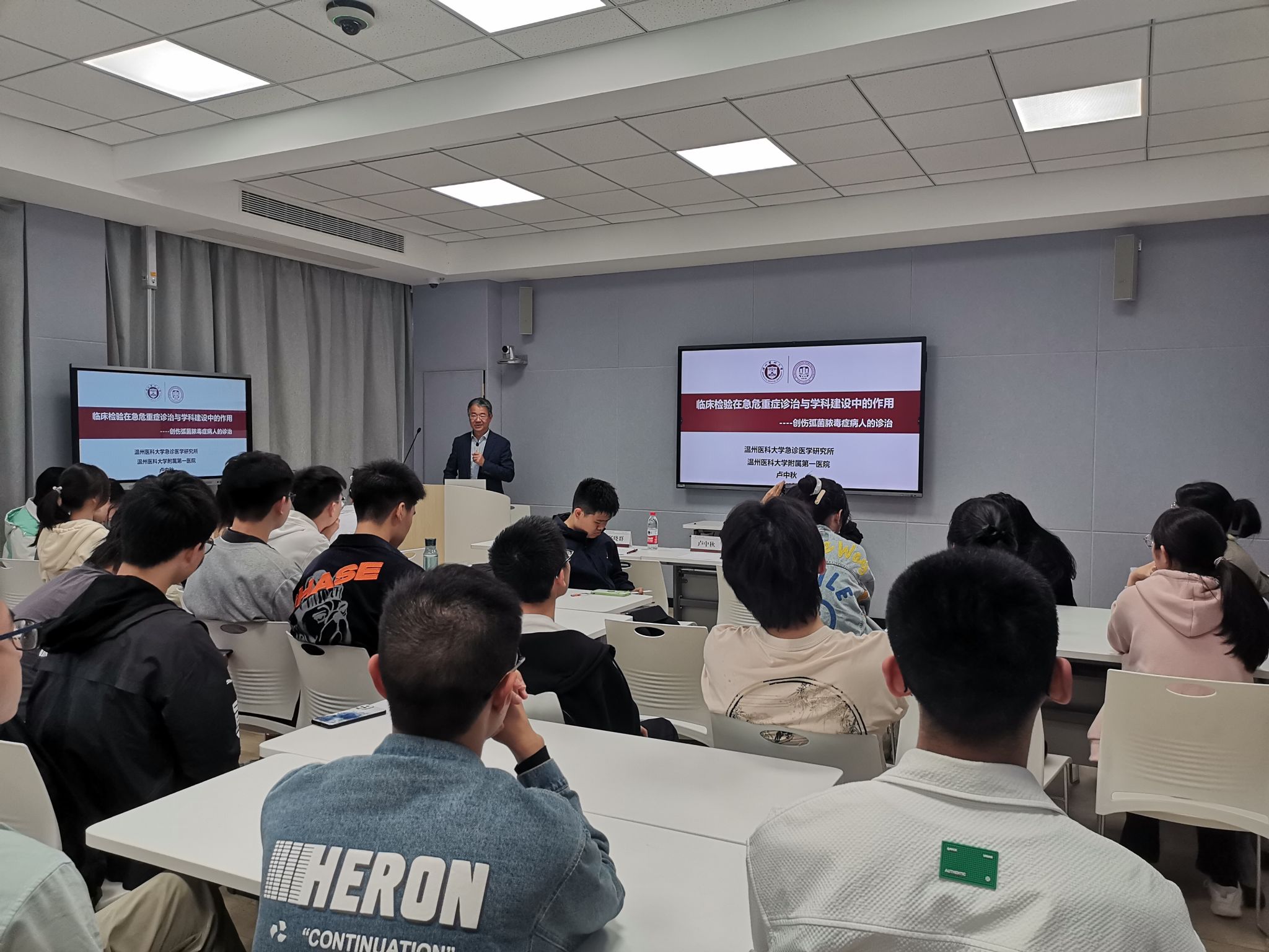 卢中秋教授以创伤弧菌脓毒症病人的诊治为切入点,引导同学们运用临床和检验的思维,参与思考、讨论、诊断,引出了临床检验在急危重症救治中的作用。随后,卢中秋教授进一步介绍了急重症感染的中西医结合救治、器官缺血再灌注损伤中西医结合、中药毒理及解毒研究等中西医结合急危重症研究的三个方向,并向同学们抛出了如何发挥临床检验在急危重症救治中的作用、如何发挥检验在急危重症科学研究中的作用以及如何锻炼成为高层次医学创新人才等三个问题,同学们在激烈的讨论中积极发表自己的见解,卢教授也对每个同学的回答进行了评价。