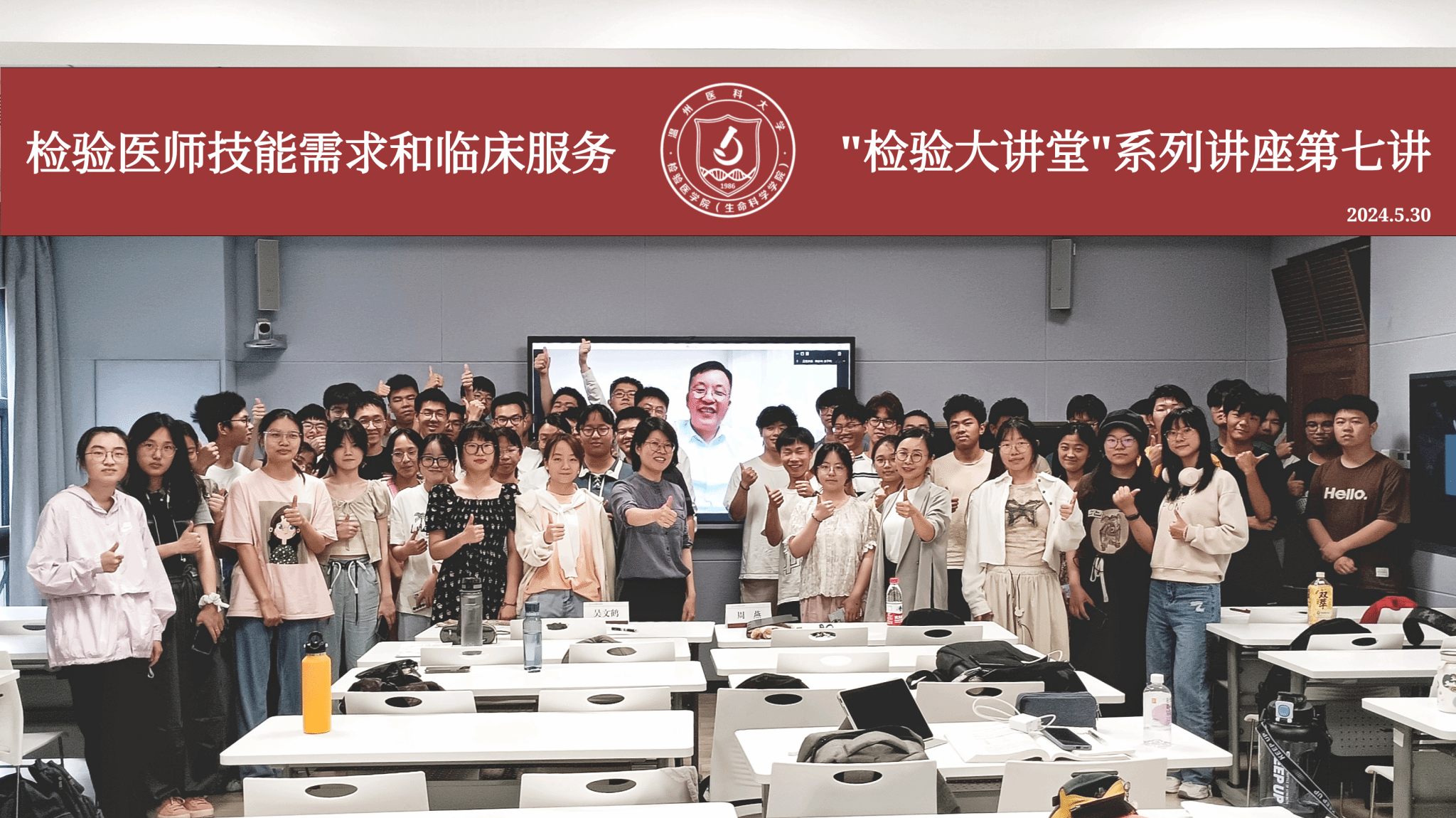 “检验大讲堂”是学院为加深“检验医师培养试验班”临床学生对临床和检验以及两者紧密关系的认识,为学生提供与一线临床名医和医学教育名家深入交流的专业平台,旨在进一步加强高层次检验医学人才培养,培育兼具临床和检验专业知识和实践能力的复合交叉型紧缺人才。