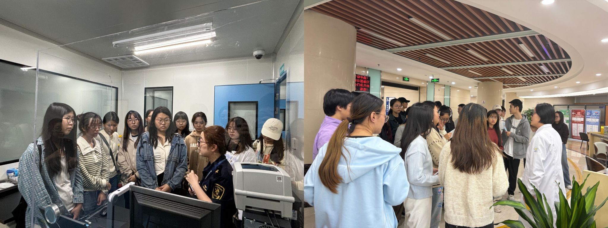 随后,见习团队来到国际旅行保健中心参观学习。保健中心工作人员热情接待了师生一行,并系统介绍了中心在出入境健康检查、传染病监测及应急处置等方面的重要职责。在参观过程中,学生们依次走访了体检中心、实验室及应急指挥中心等部门。通过工作人员的详细讲解,学生对不同岗位的职责分工及其技术要求有了更清晰的理解,进一步加深了对卫生检验与检疫领域的整体认知。