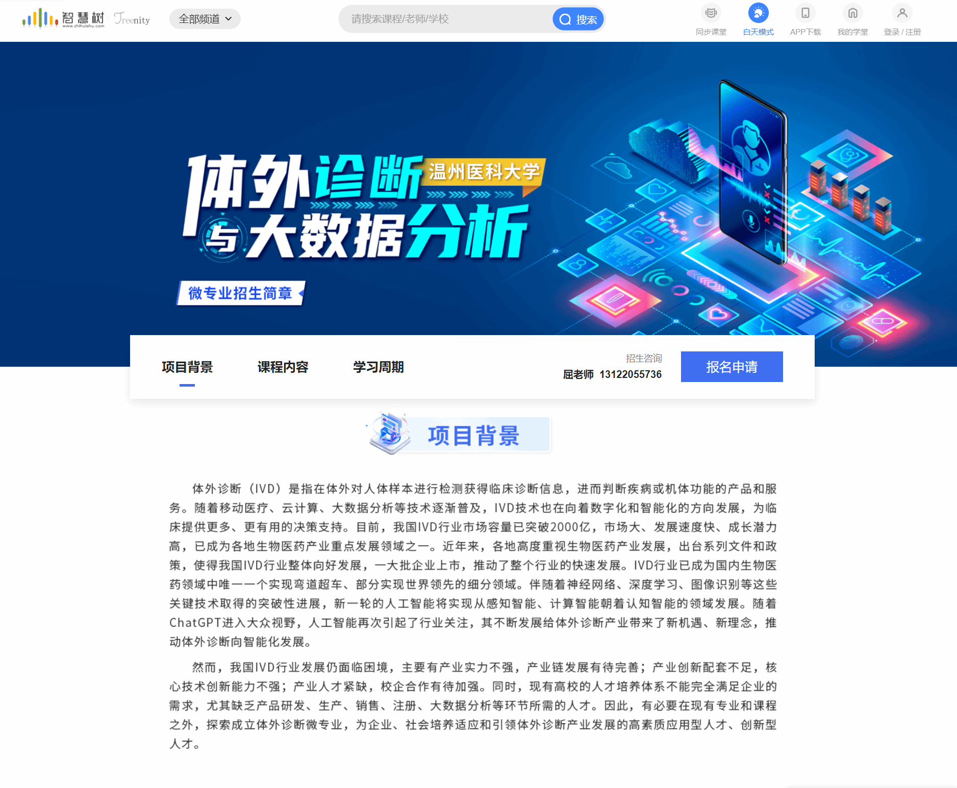 院长郑晓群教授领衔,联合10余位来自人工智能、医学检验及大数据领域的优秀教师共同开发,是《体外诊断与大数据分析》微专业的核心课程之一。课程内容紧密结合“健康中国2030”战略需求,系统介绍了智慧检验与大数据分析的技术内涵、发展历程、前沿趋势及其在疾病诊断、治疗、预后判断、预防和实验室管理等医学场景中的应用价值与挑战。通过本课程的学习,学生不仅能掌握跨学科融合创新的思维方式,还将为未来成长为复合型医学检验技术人才奠定坚实基础。