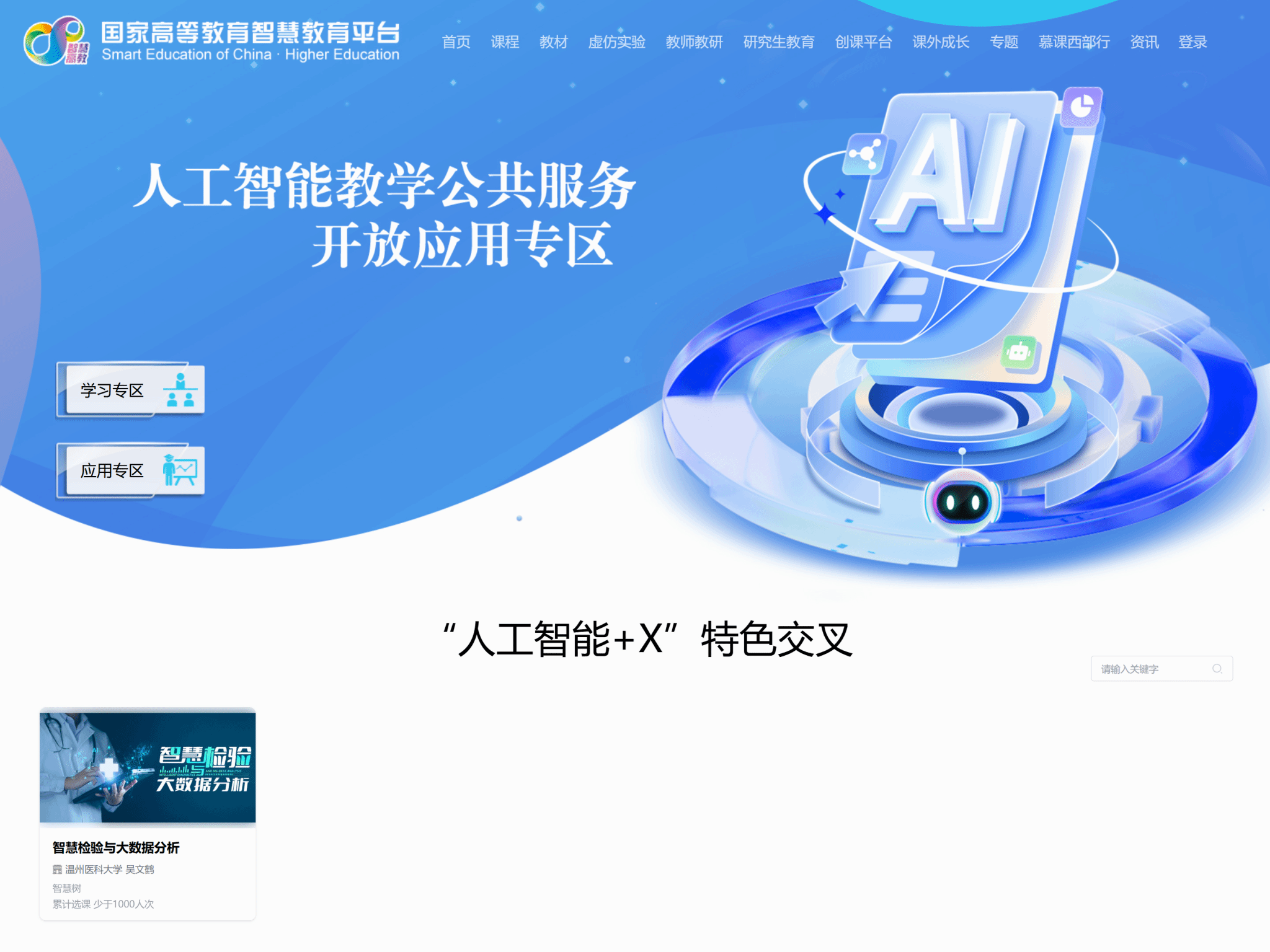 (生命科学学院)的《智慧检验与大数据分析》课程成功入选首批国家高等教育智慧教育平台“人工智能+X”特色交叉课程,成为全国36门入选课程之一,同时也是此次浙江省唯一获此殊荣的课程。该课程将在国家高等教育智慧教育平台人工智能教学公共服务开放应用专区集中展示,标志着51吃瓜网