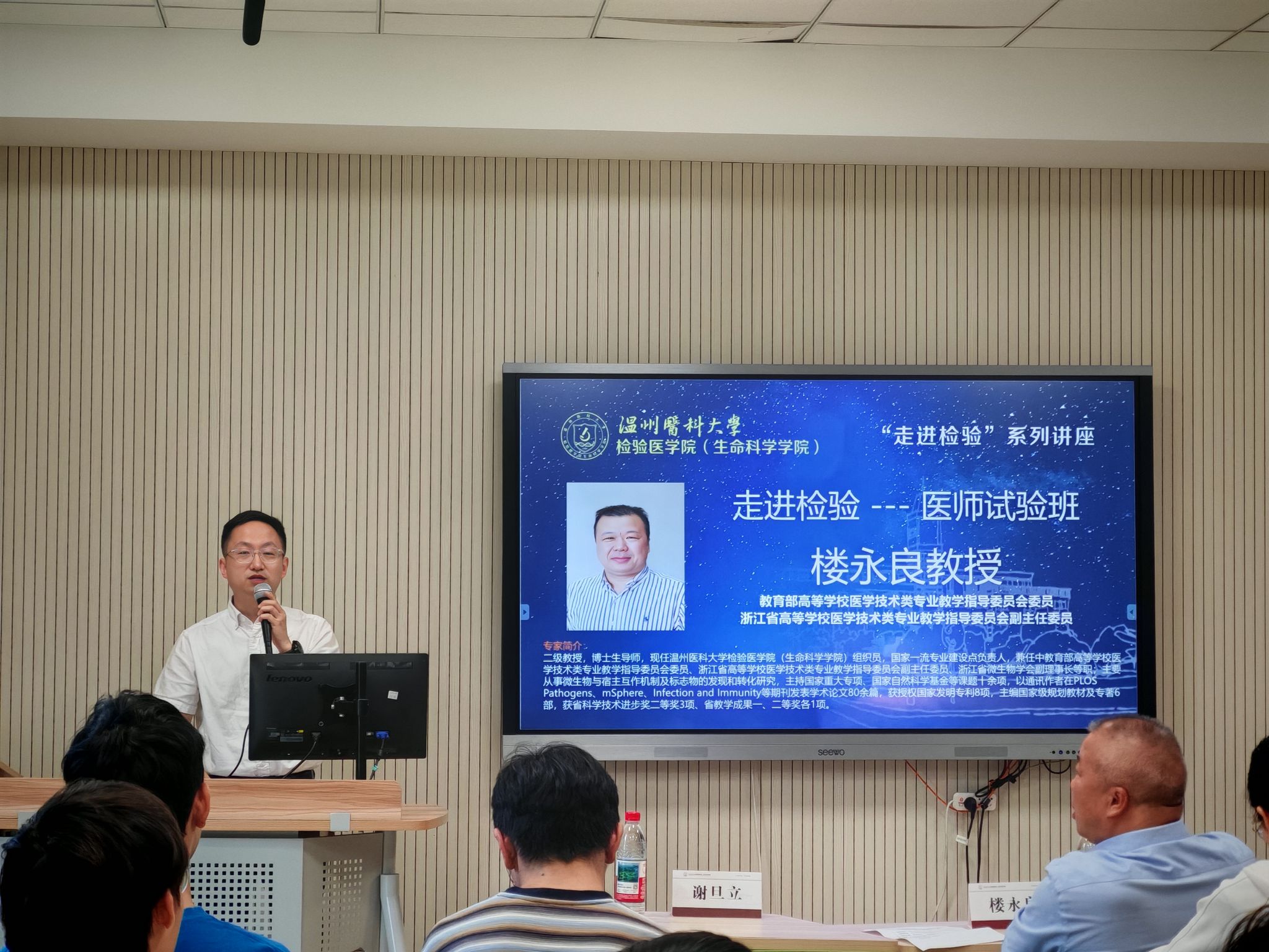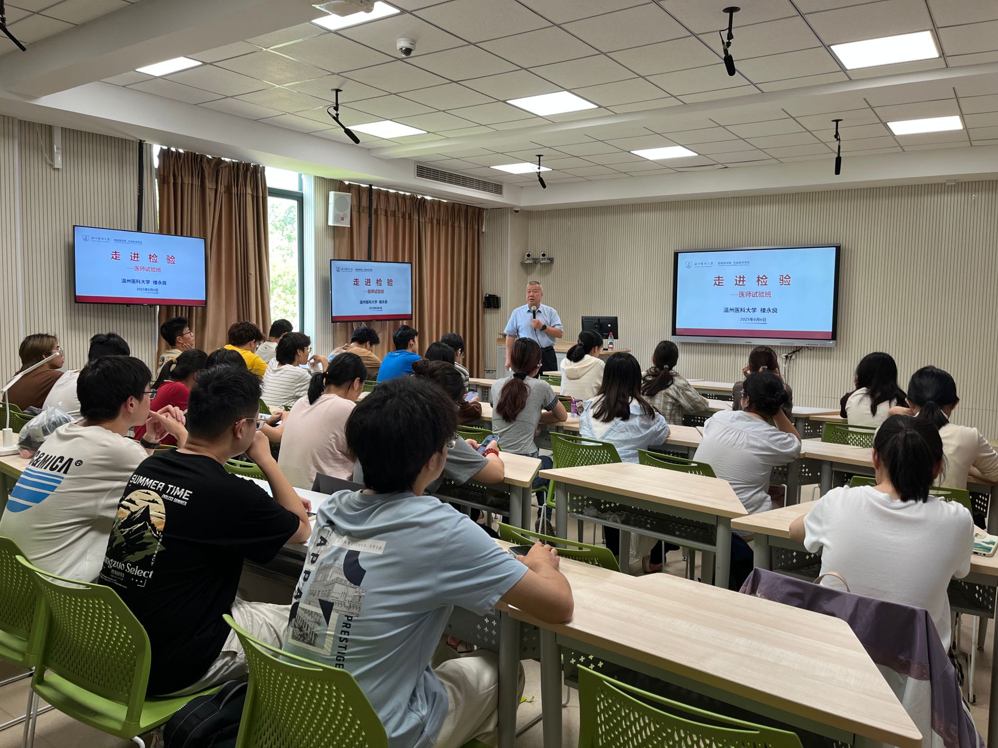 6月6日,本学期“走进检验”系列讲座第十二讲在智慧教室6A101举行。教育部高等学校医学技术类专业教学指导委员会委员,浙江省高等学校医学技术类专业教学指导委员会副主任委员楼永良教授就检验医师的办学历程、人才培养和职业发展以及在临床诊断中的作用等内容与2024级临床医学(检验医师培养试验班)的同学进行了深入交流,本次活动由51吃瓜网