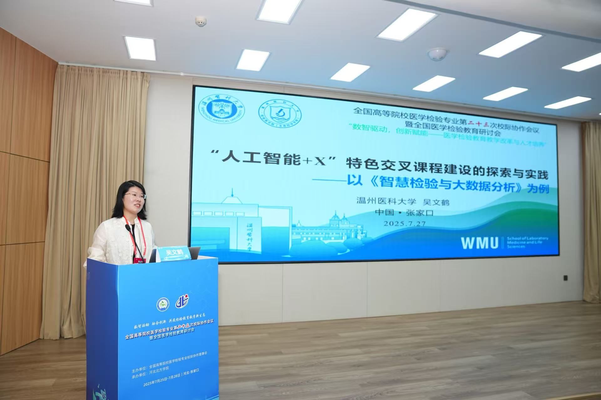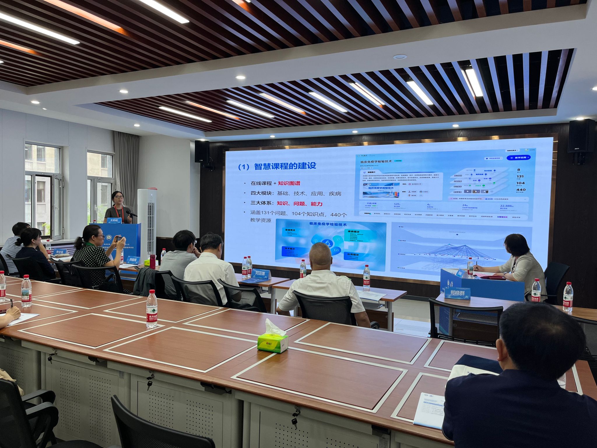 在人才培养模式创新、实践体系构建等方面的特色成果;在临床基础和血液学检验、微生物和免疫学检验分委会论坛上,吴文鹤老师与王彩虹老师分别以《“人工智能+X”特色交叉课程建设的探索与实践——以“智慧检验与大数据分析”为例》《“临床免疫学检验技术”数智驱动混合式教学模式的探索与实践》题作报告,深入剖析人工智能背景下课程体系重构、混合式教学模式创新等教学改革实践经验,为全国同行提供了可借鉴的教学改革思路。