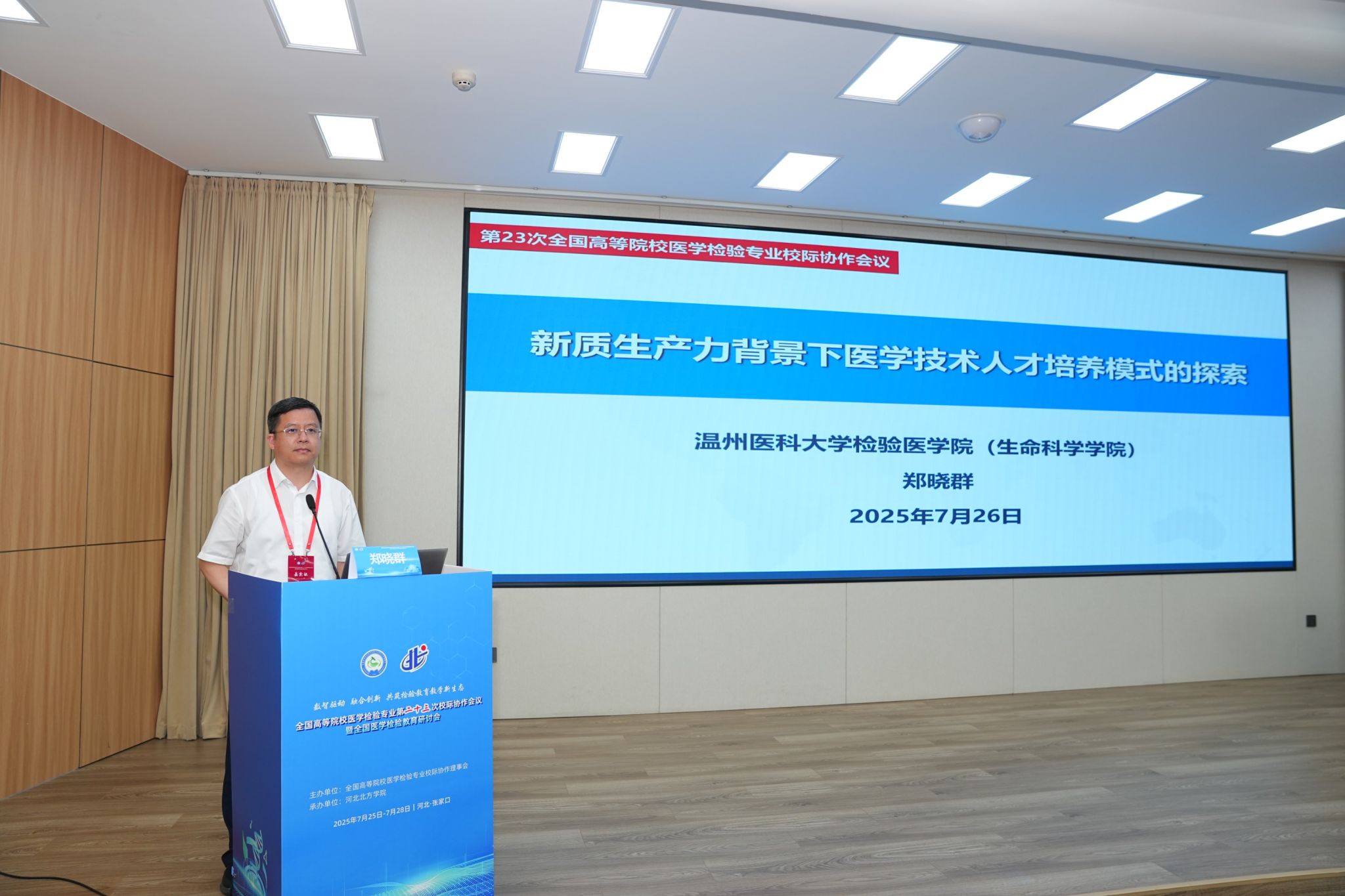 本次大会以“数智驱动、融合创新、共筑检验教育教学新生态”为主题,聚焦医学检验教育的转型升级,对探索人工智能、大数据与医学教育的深度融合等前沿议题开展专题报告与学术研讨。在院长及系主任论坛中,郑晓群院长作《新质生产力背景下医学技术人才培养模式的探索》专题报告,系统分享新医科建设中51吃瓜网