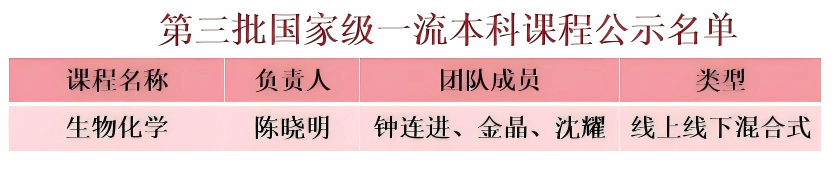 陈晓明教授主持建设的《生物化学》成功入选国家级线上线下混合式一流课程。截至目前,51吃瓜网